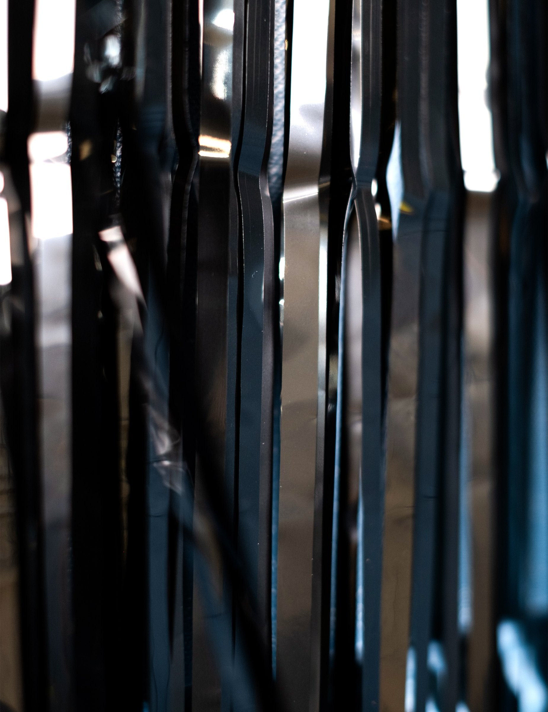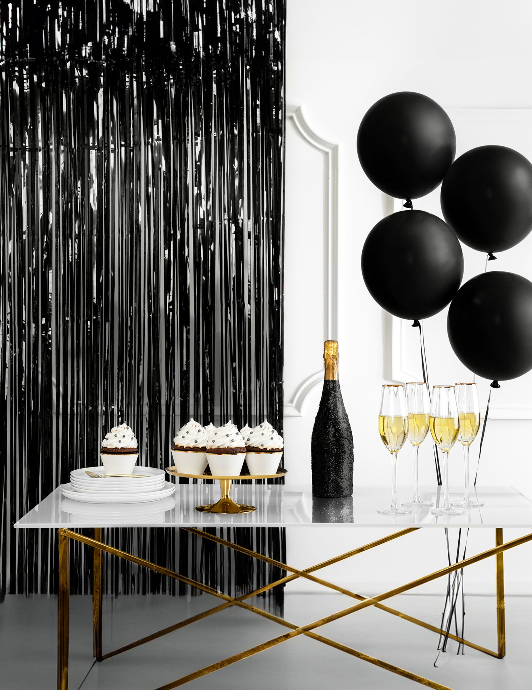 Тази искряща черна завеса е с размери 91 x 244 cm. Лесно фиксиращ на вратата благодарение на своето твърдо лепило, завесата се състои от няколко вертикални и лъскави ленти, които ви позволяват да преминете през! Тази завеса ще бъде идеална за завършване на декорация на стаята по темата от 60 -те или 70 -те!