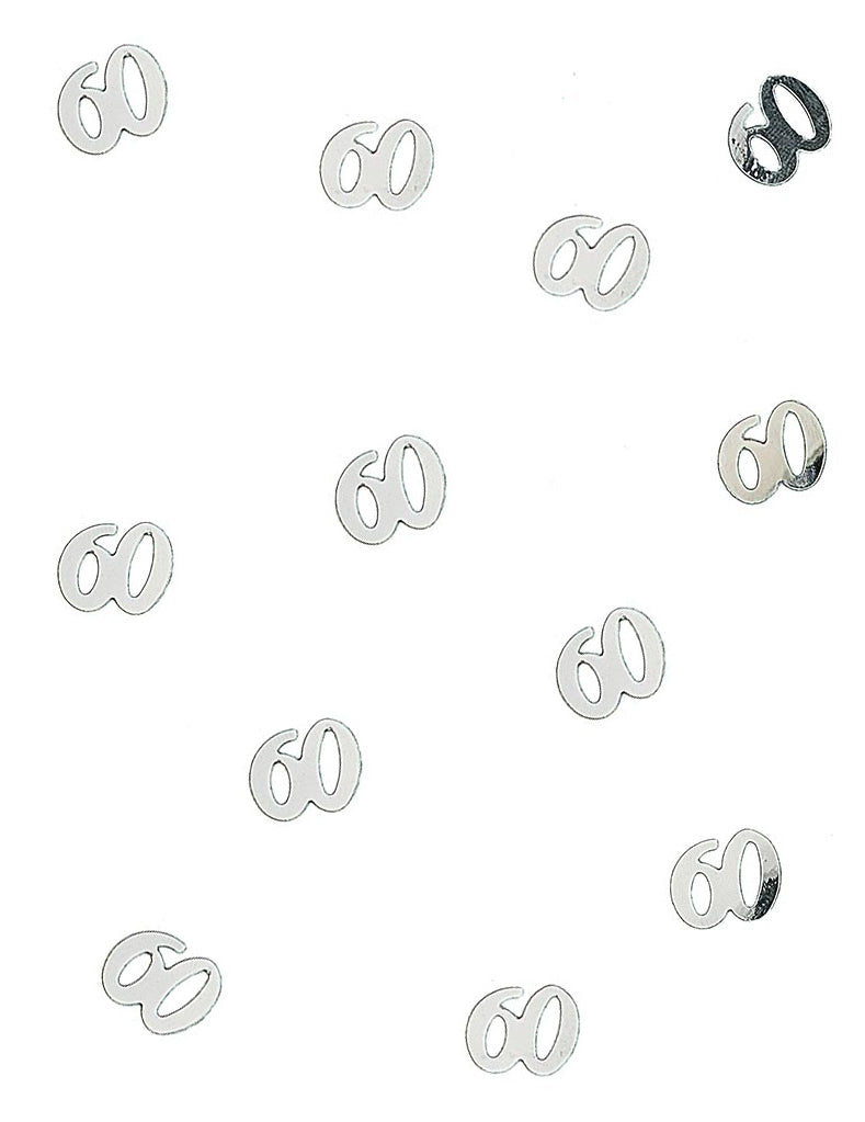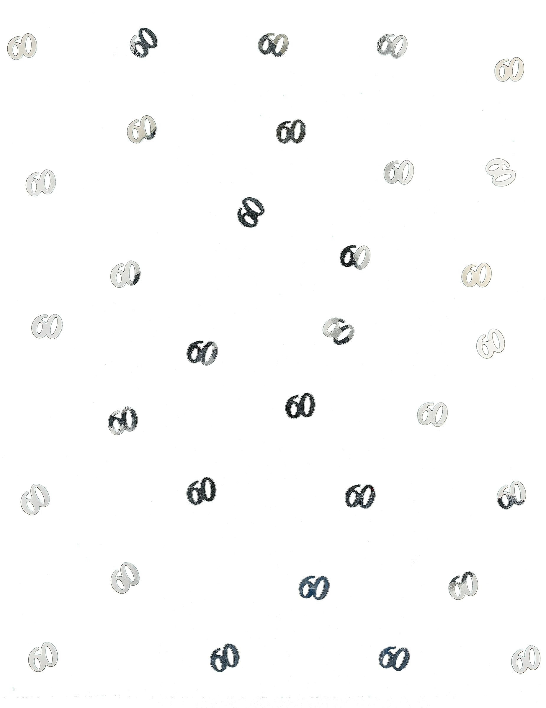 Този саше съдържа 10 г дървена маса конфети. Те представляват числото 60 и са сребърни на цвят. Тези конфети измерват приблизително 1,5 х 1 cm. Можете да ги поръсите на масата си по време на годишнина от сватбата или да отпразнувате 60 години!