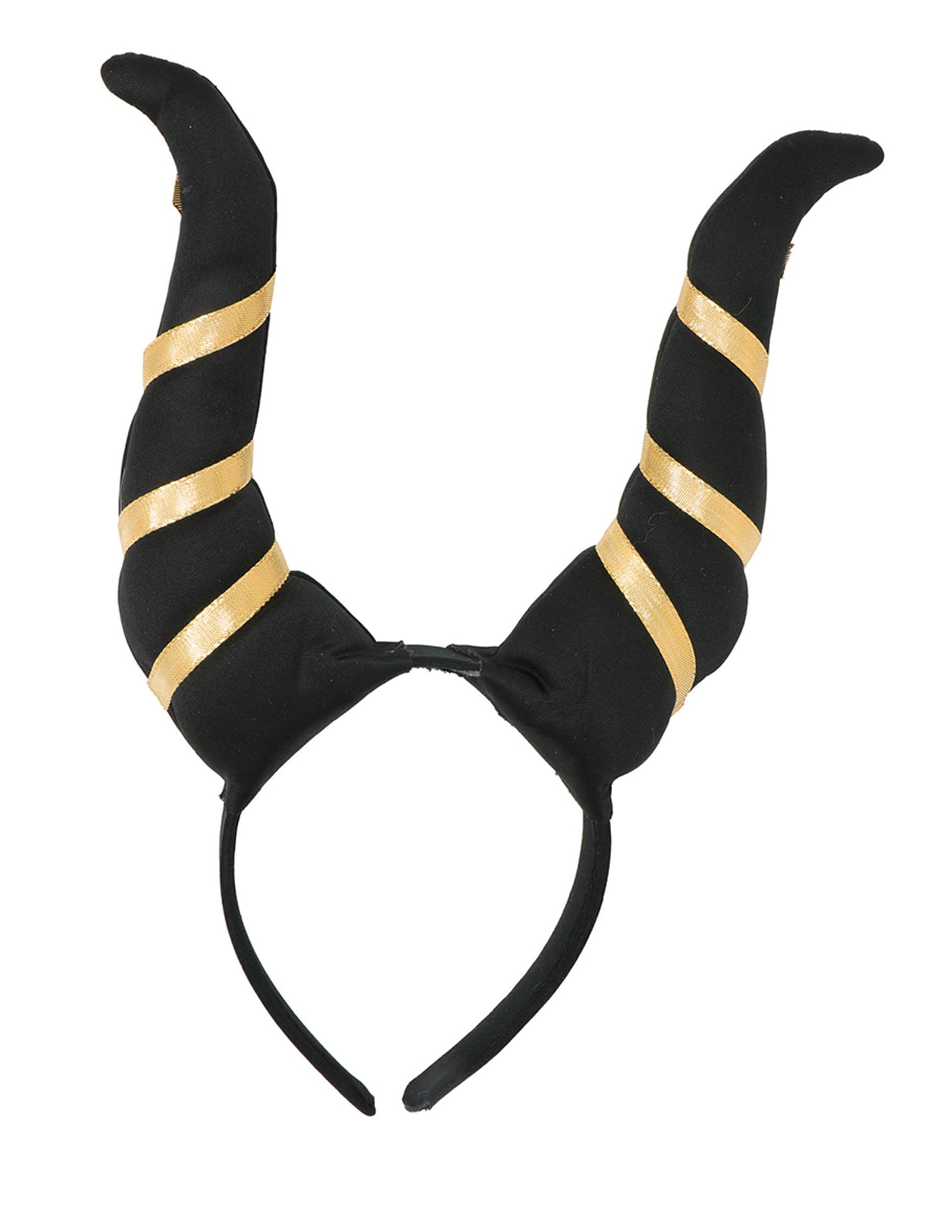 Тези демонични рога са за жени. Те са черни и имат златни ленти. Те се държат на лента за глава, за да ги носят лесно. Тези рога в идеалния случай ще завършат костюм на дявол по време на Хелоуин например!