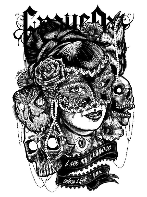 Този черно-бял потник за жени добавя смел и модерен щрих към вашия стил. Големият му черен принт, изобразяващ женско лице в готически дизайн, му придава мистериозен и напорист вид, идеален за тези, които обичат да се открояват. Свободната му кройка и широките отвори за ръкавите предлагат идеална свобода на движение, като същевременно фино разкриват горната част, носена отдолу, за модерен многопластов ефект. Перфектна дреха за алтернативно вечерно излизане, рок концерт или за създаване на уникален градски тоалет.
