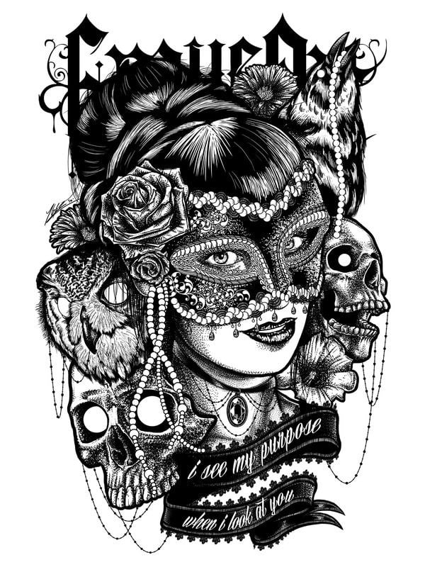 Този бял и черен потник за жени придава смел и модерен акцент на вашия стил. Големият черен принт с женско лице в готически дизайн създава мистериозна и уверена визия, идеална за тези, които обичат да се открояват.