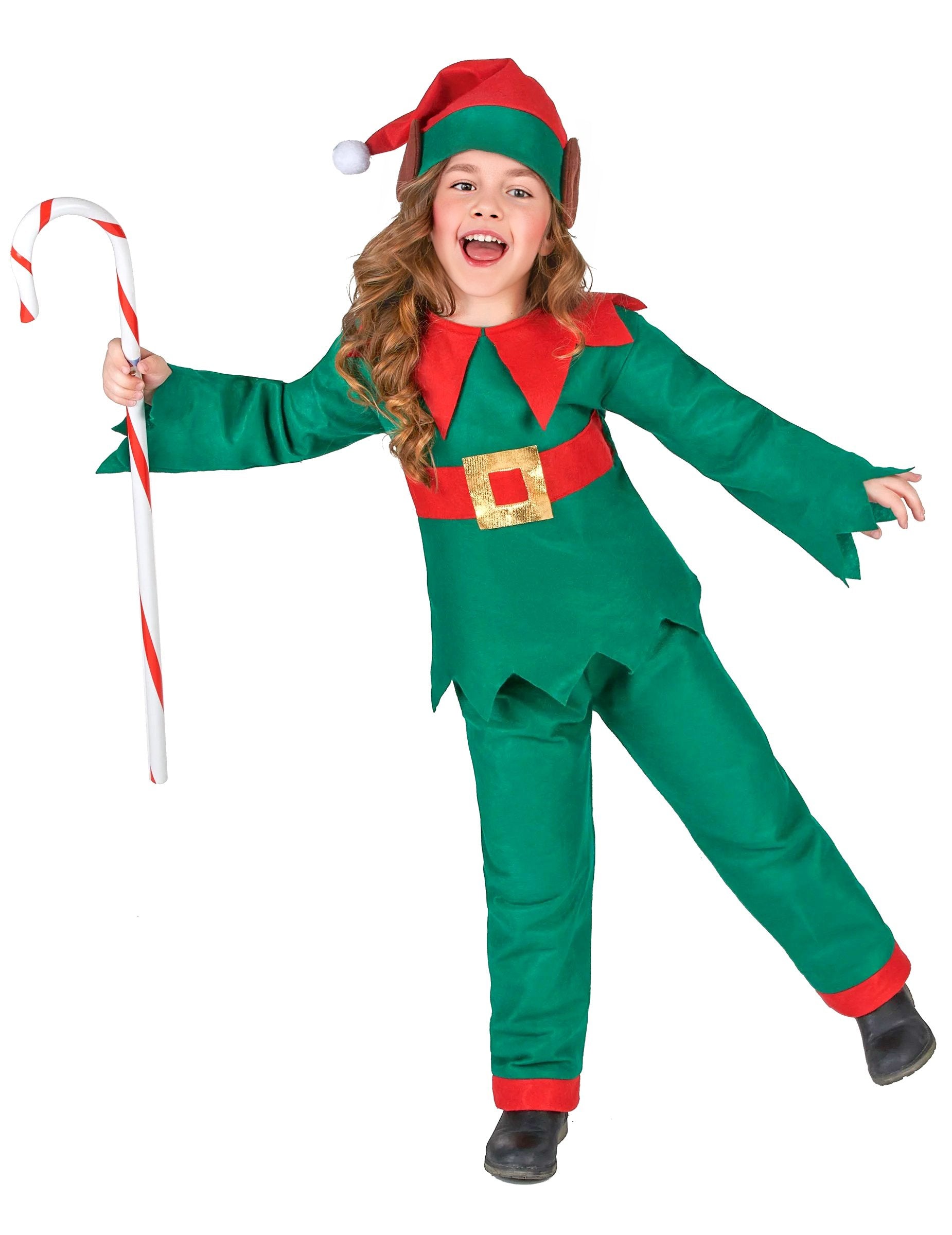 Този костюм на коледен елф е за деца и ще бъде подходящ за малко момиче, както и за малко момче! Той е съставен от връх, панталони и шапка, всички с гъвкаво и меко усещане за оптимален комфорт. Размерът на панталоните е еластичен, а драскотините, присъстващи в задната част на пуловера, ще направи този комплект истинско удоволствие по време на превръзката. Шапката е червена и има малка бяла помпом в своята точка и две доста заострени уши от елф от всяка страна на капачката. Този пълен костюм ще бъде идеален за коледен пазар или дори танцово шоу!