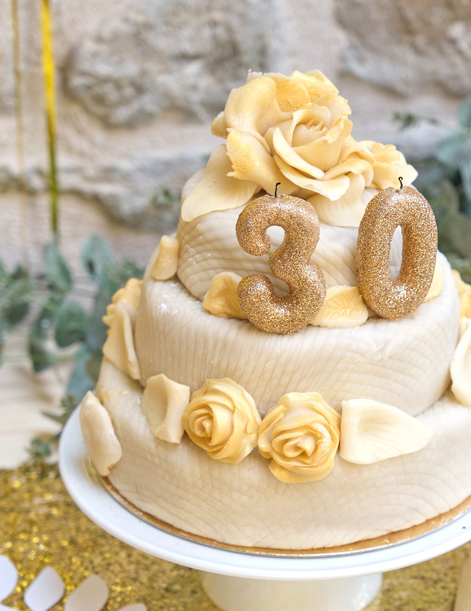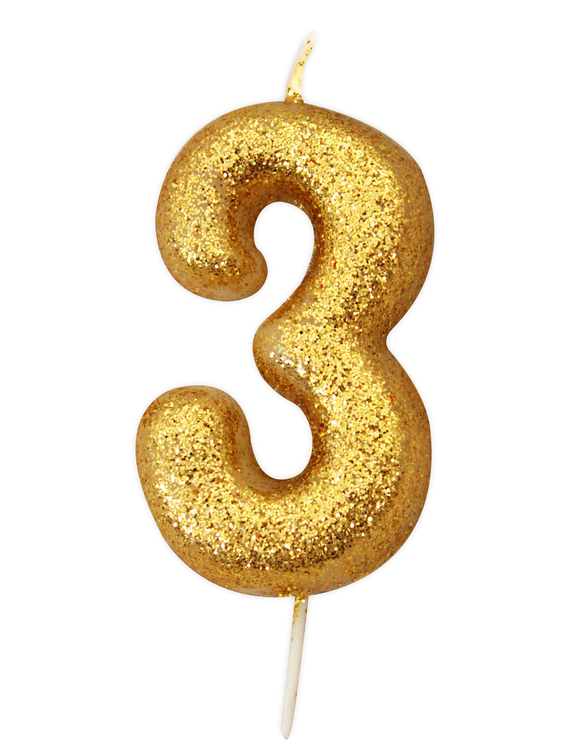 Златна свещ във форма на цифра 3 с брокат за рожден ден 9 cm