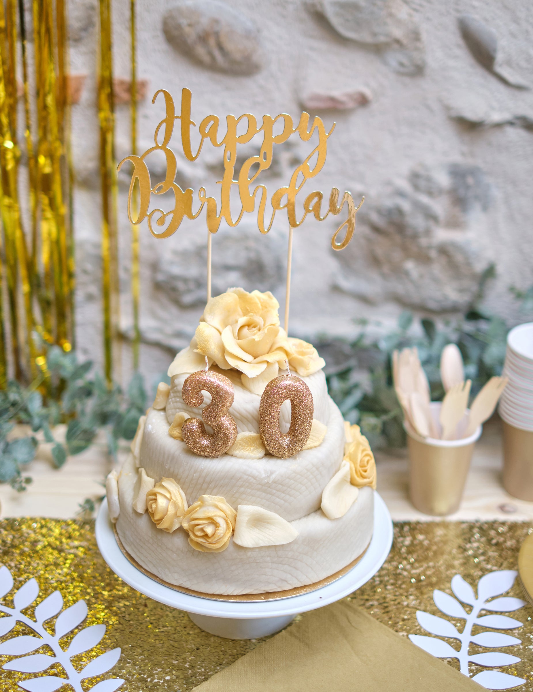 Нейното напълно блестящо златно покритие с брокат ще добави блясък към вашето парти. Практична, тази свещ е снабдена с бял пластмасов държач за стабилно поставяне върху вашата рожденденска торта.