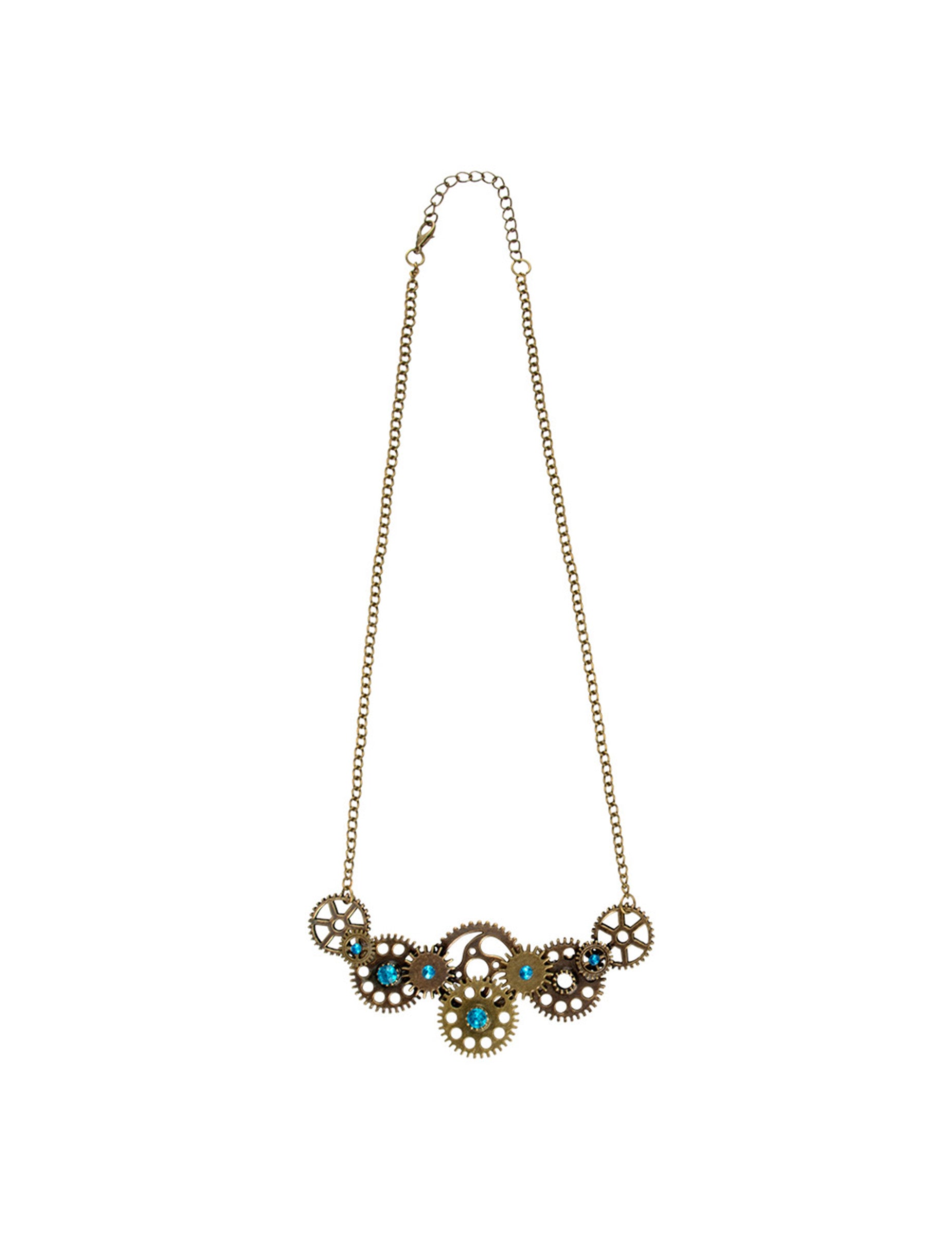 Тази огърлица за възрастни steampunk е изработена от метал. Той представлява верига на възрастни ефекти, с висулка, образувана от зъбци с различни размери. Сините кристали носят цвят на висулката. Това огърлица ще бъде идеално за завършване на вашия стимпанк костюм по време на прикрита вечер.