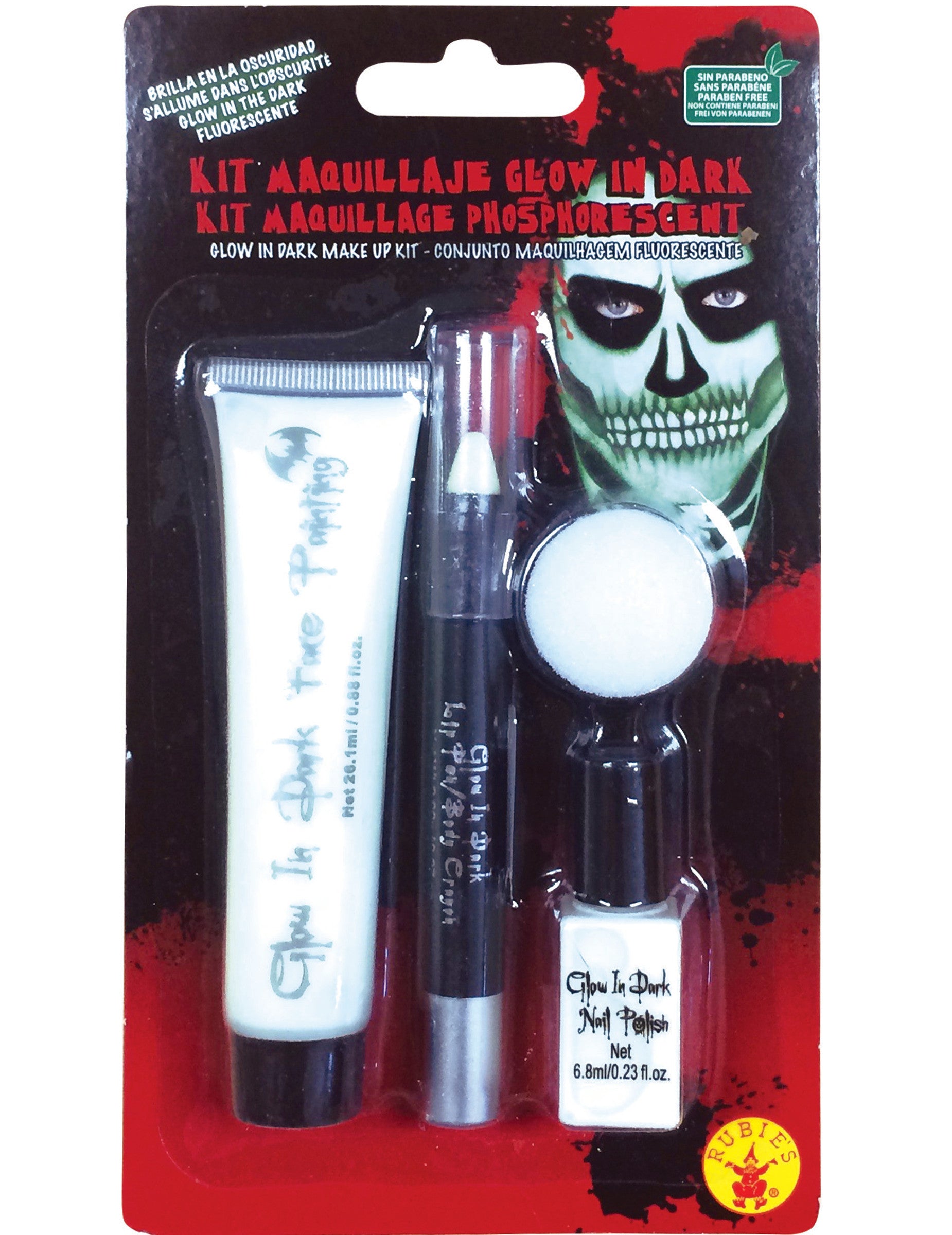 Този комплект за грим за възрастни се състои от епруветка за грим, молив, тръба от лак и гъба. Целият грим е фосфоресциращ, това ще ви позволи да имате грим, който дори се вижда в тъмното. Той е формулиран без парабен. Включена е гъба за прилагане на грим. Този комплект ще бъде идеален за носене по време на Хелоуин вечер!