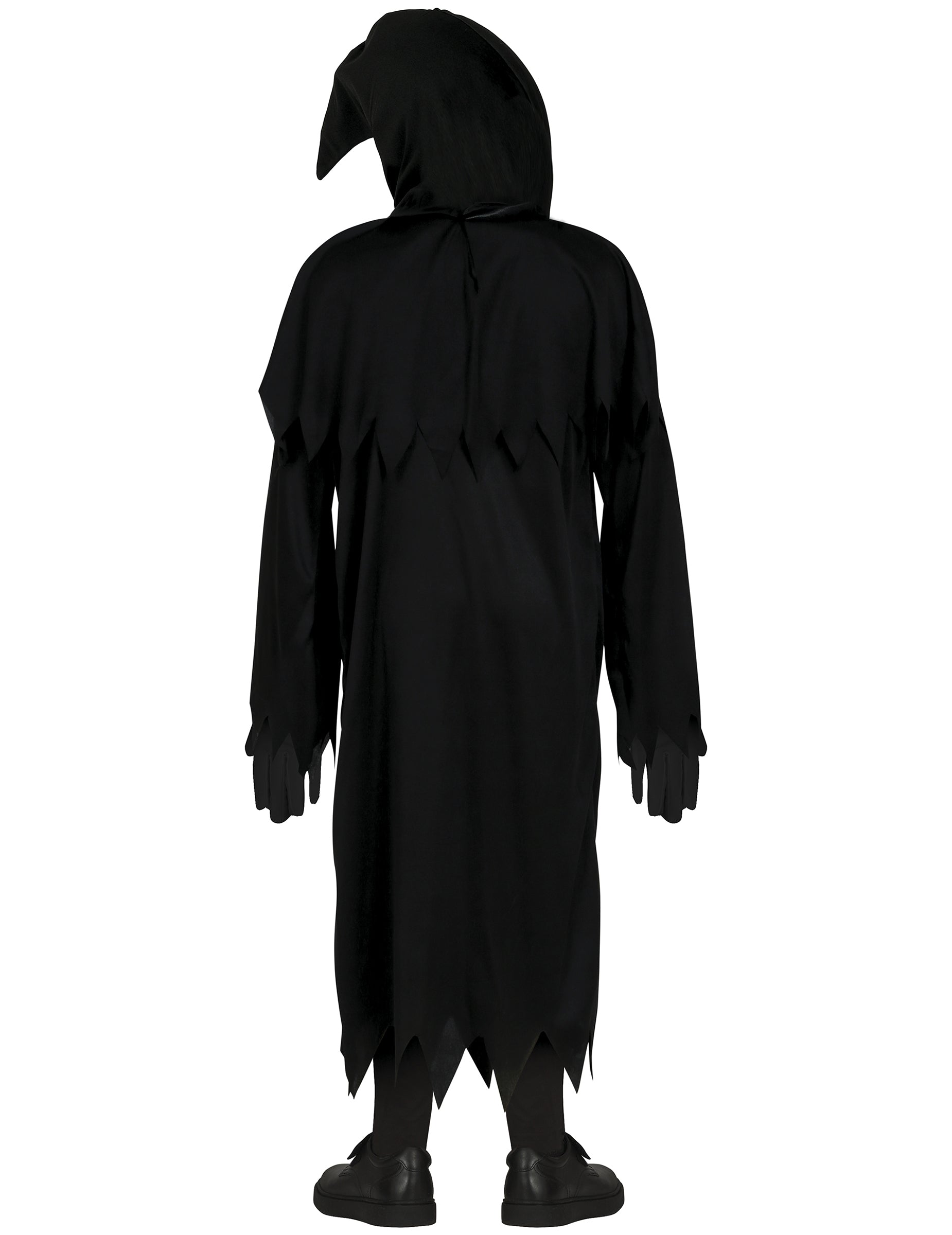 Този костюм за косене на тъмнината е за деца. Той има туника и качулка с интегрирана качулка (фалшиви, ръкавици и шайби, които не са включени). Изцяло черната туника се сервира в края на ръцете и краката. Дългите ръкави са разпалени, за да останат верни на това ужасяващо въплъщение на смъртта! На туниката идва да сложи качулка, която е затворена отпред, за да не позволите на детето ви да се появи. Материята е прозрачна, за да осигури добра видимост. Тази качулка също попада обратно в точката на гърдите и гърба, за да не позволите на нещо да се появи от тялото на вашето дете.