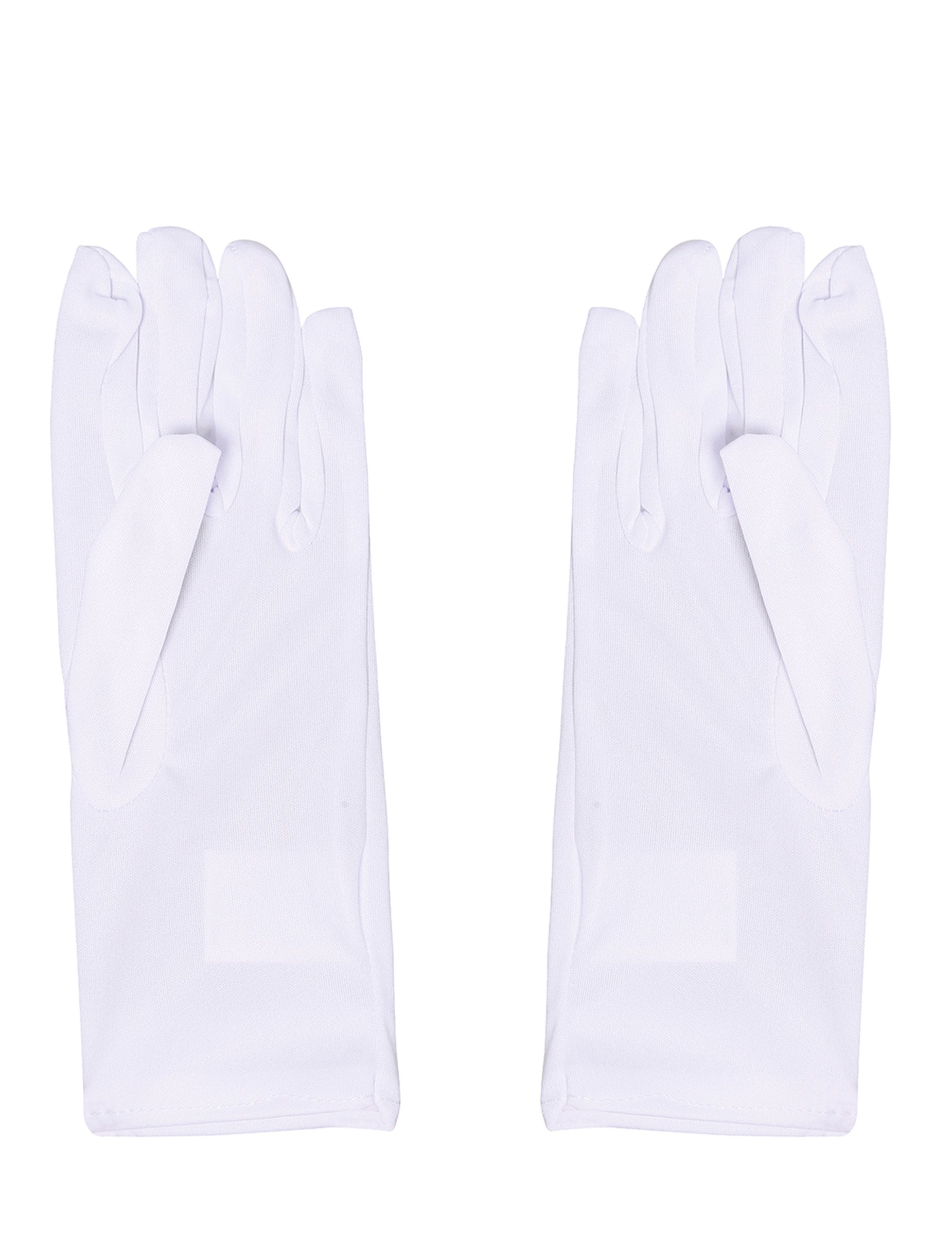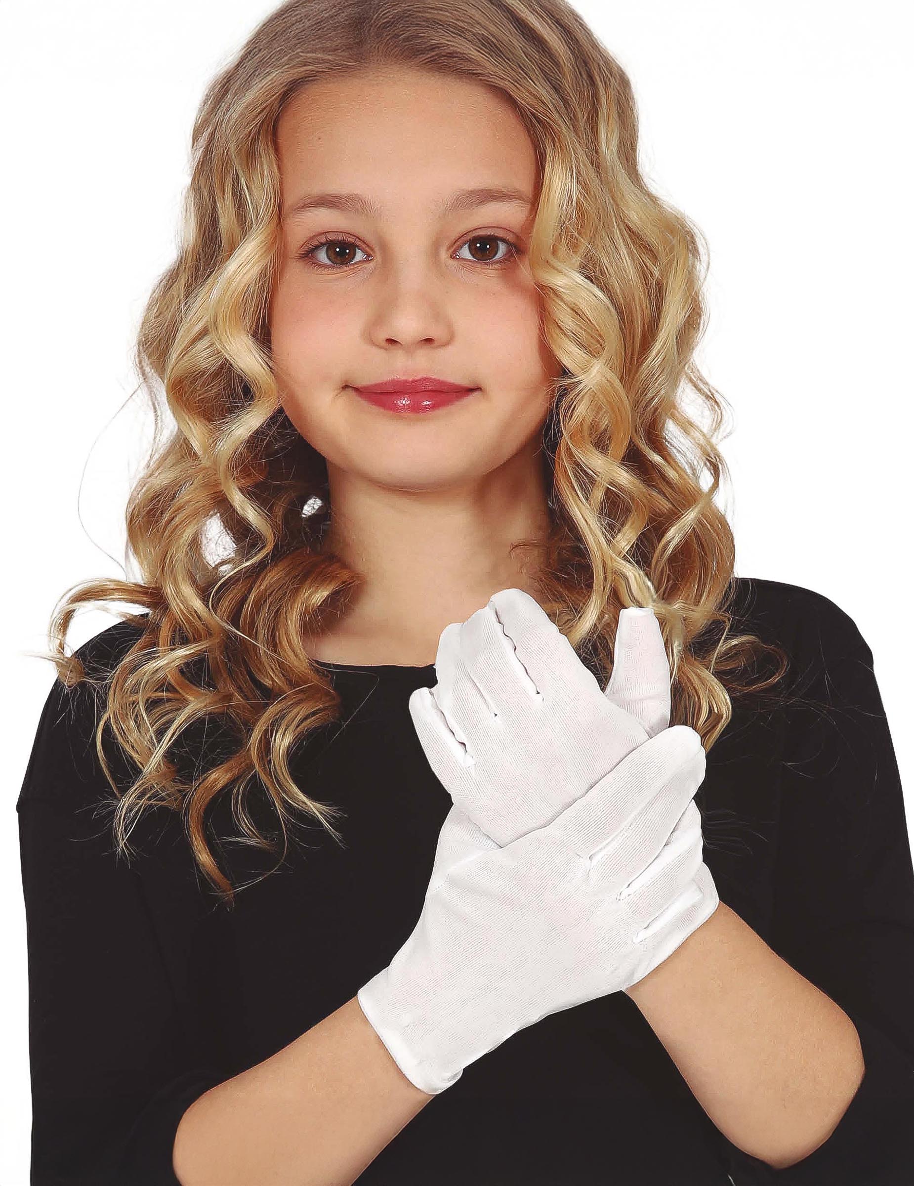 Този чифт къси бели ръкавици, продавани самостоятелно, е за деца. Те са подходящи за деца на възраст от 5 до 7 години. Тези ръкавици ще бъдат идеални за аксесоари за различни видове маскировки по време на прикрити вечери или карнавал!