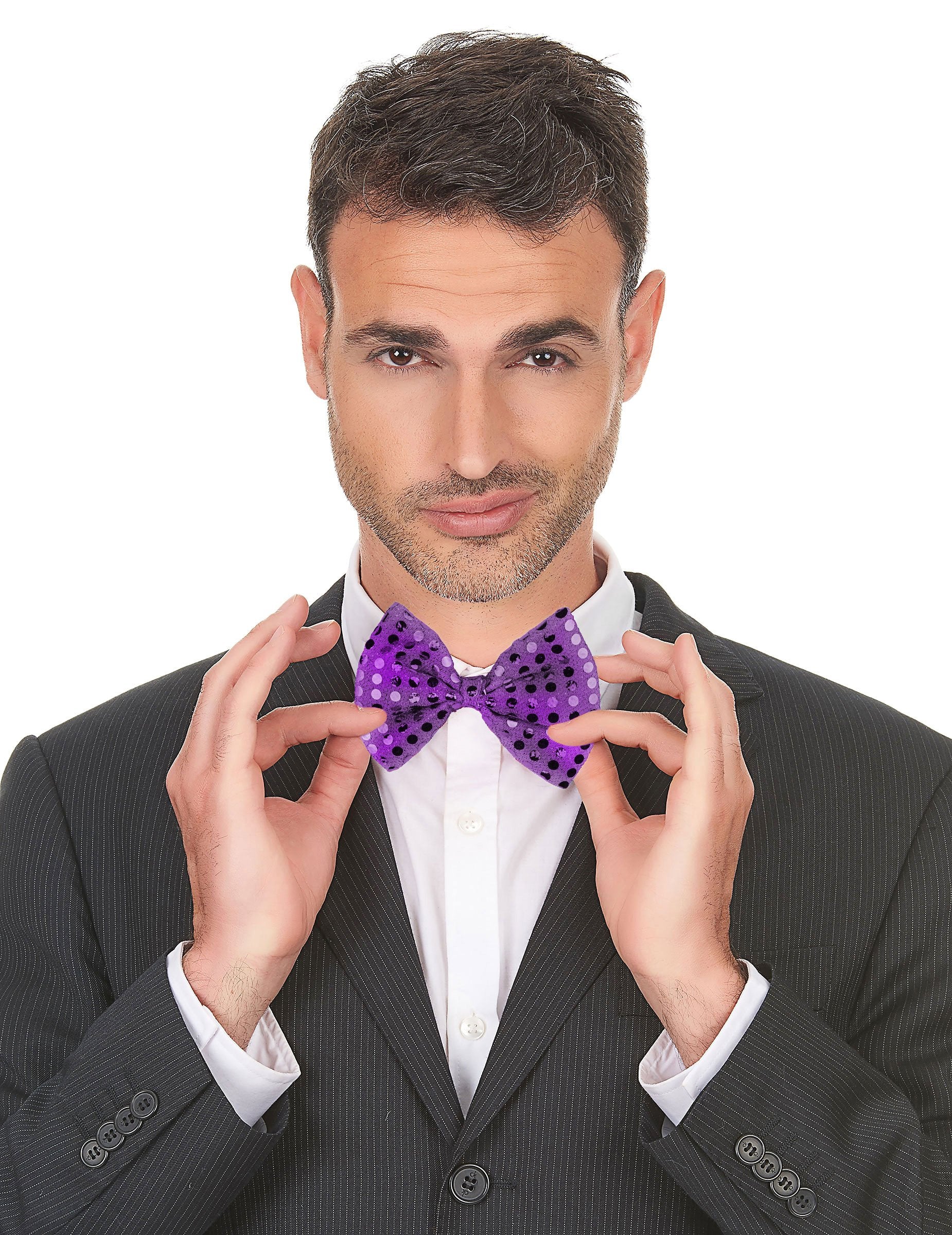 Този лилав възел на пеперудите е за възрастни. Той има пайети отгоре и лесно ще се прикрепи около врата ви. Тази папийонка ще бъде идеална за завършване на вашето облекло по време на костюм или за всяко друго празнично събитие!