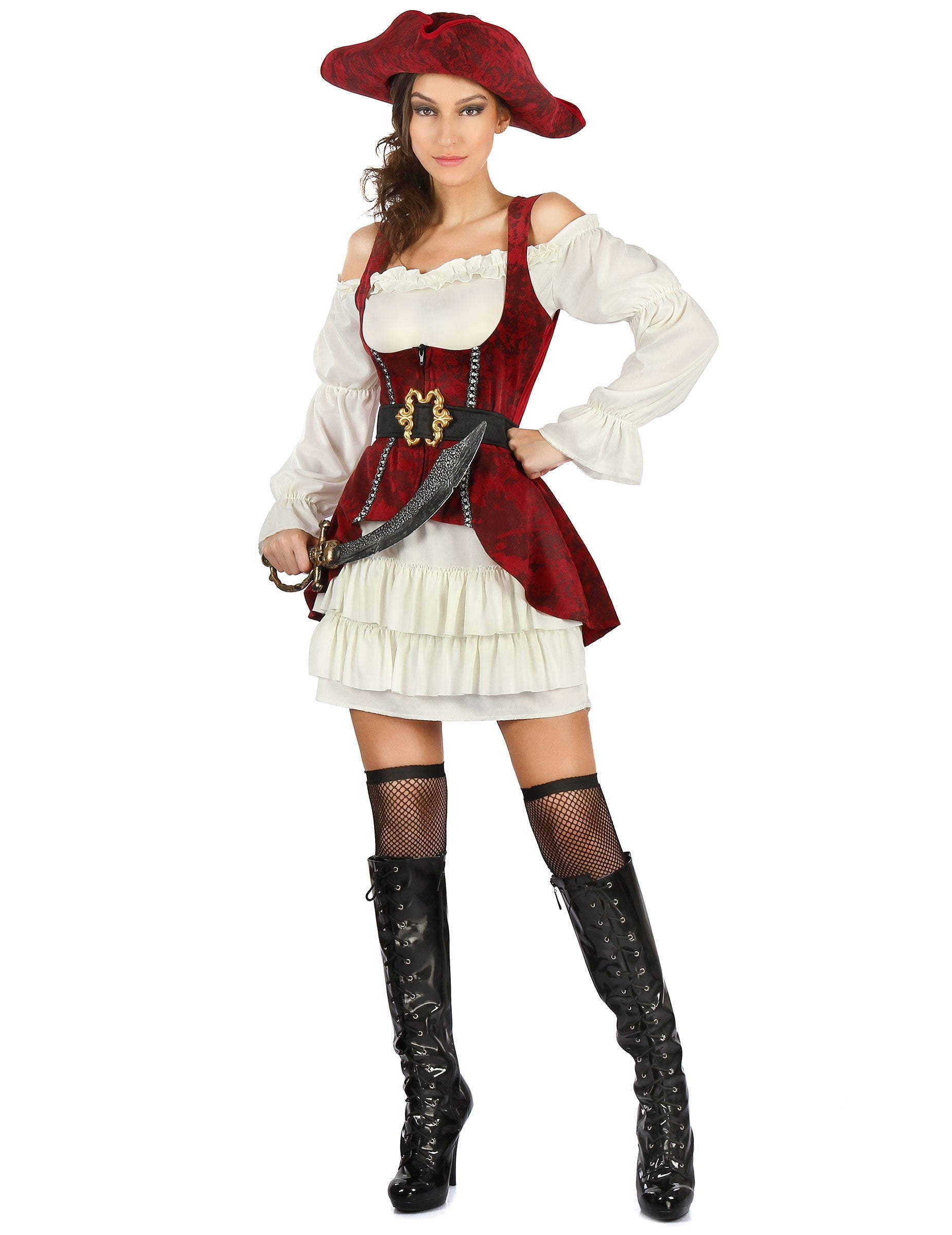 Бели и червени пиратски костюми за жени