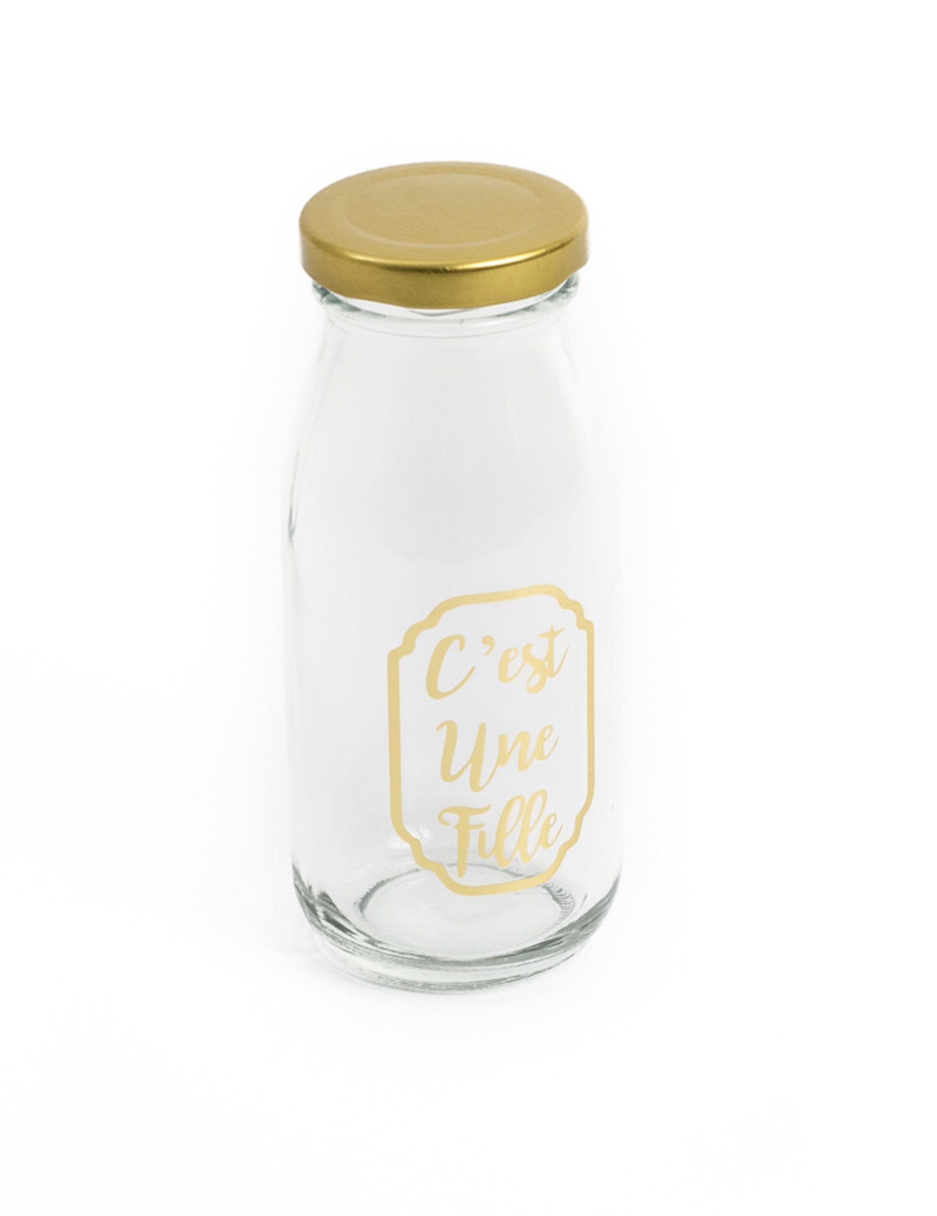Това бутилка с шоколадов бар прозрачно стъкло с размери 6 x 14 cm. Отличава се със златните си маркировки.Тя е момиче" и съответстващата капачка. За вкусна декорация напълнете тази бутилка с бонбони или смутита Ръчно изработени предмети, с които да изненадате гостите си. Идеални за... бебешки душ или оригинално съобщение за раждане, това бутилка с шоколадов бар Той се адаптира към много празнични атмосфери.