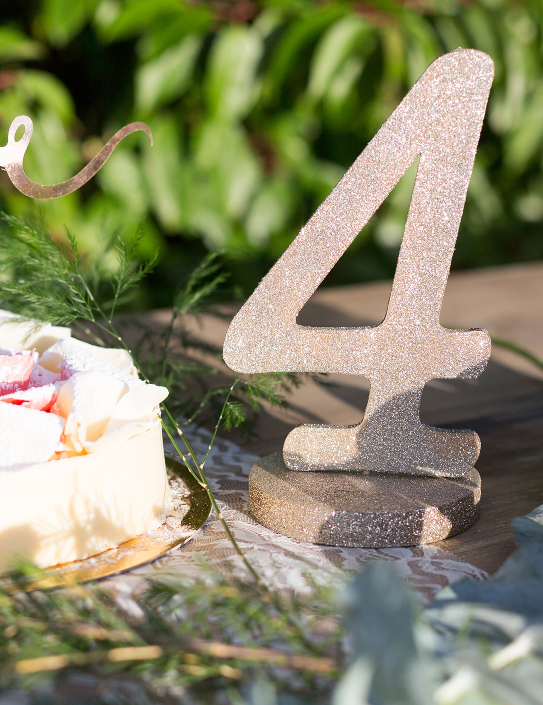 Този централен елемент представлява номер 4 и се държи на база. Той е в бляскава дървесина с цвят на шампанско и е с височина приблизително 20 см. Тази декорация ще бъде идеална за вашите празнични маси.