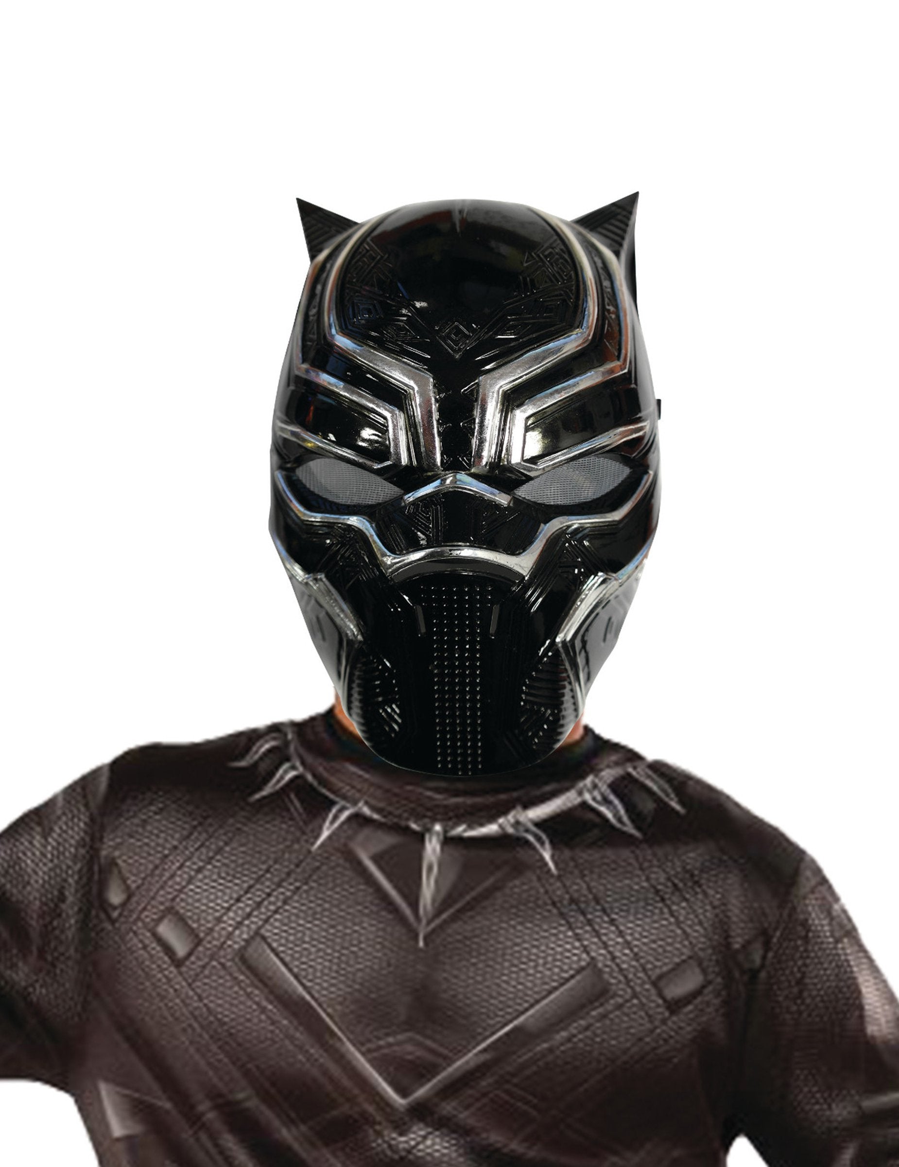 Тази половин PVC маска за деца е тази на Черната пантера. Той е под официален лиценз на Marvel. Тази напълно лъскава черна маска представлява маската от Черната пантера, този супер герой крал на Ваканда, чието животно е Черната пантера. Той има еластични крепежни елементи със система за затваряне на велкро, за да осигури добра подкрепа. Тази половин официална маска ще бъде идеална за завършване на маскировката на сина ви в деня на закуската му за рожден ден по темата за Черната пантера.