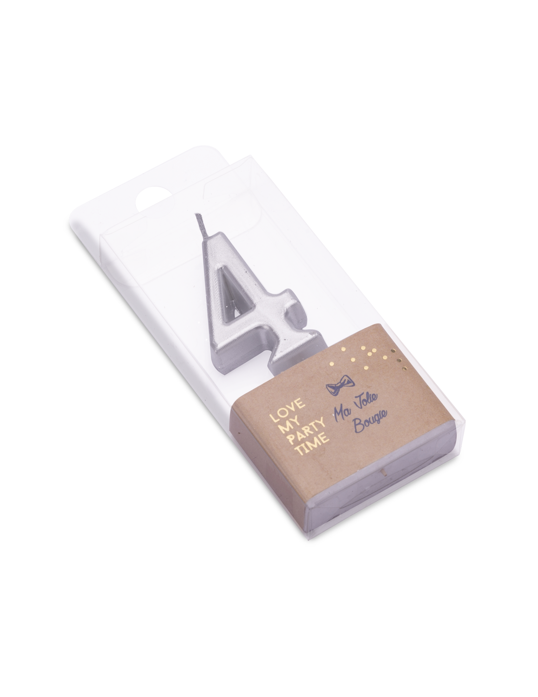 Метална сребърна свещ за рожден ден номер 4 4.3 cm с връх