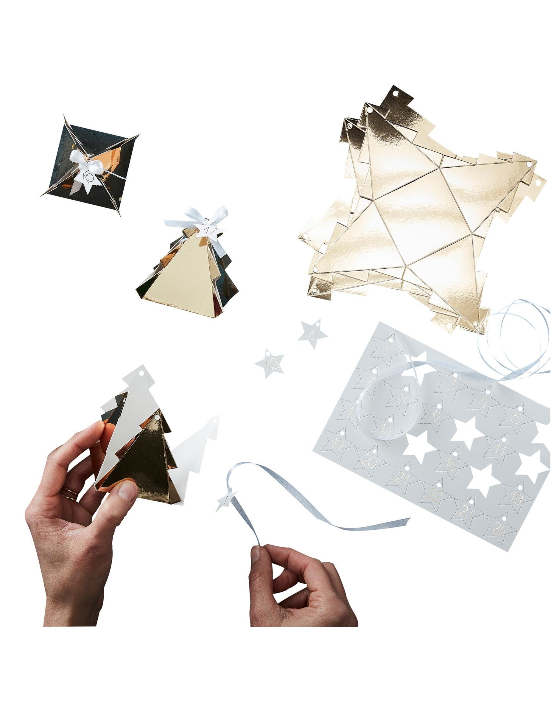 Préparez les fêtes avec ce calendrier de l'avent complet incluant 24 contenants de 5,5 cm, 24 stickers de 2,5 cm ainsi que 24 liens de 30 cm. Chaque petite boîte en forme de sapin doré se ferme facilement avec le ruban inclus. Il vous suffit d'apposer l'étiquette numérotée pour concevoir un petit cadeau pour attendre Noël unique. Garnissez-les de friandises gourmandes ou de messages personnalisés. Ce calendrier de l'avent personnalisable est l'accessoire idéal pour faire plaisir à vos proches et leur permettre d'attendre Noël dans la joie et la bonne humeur.