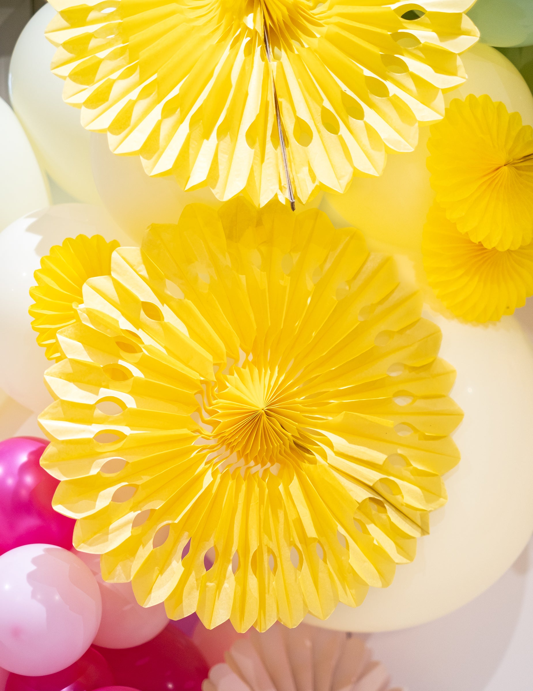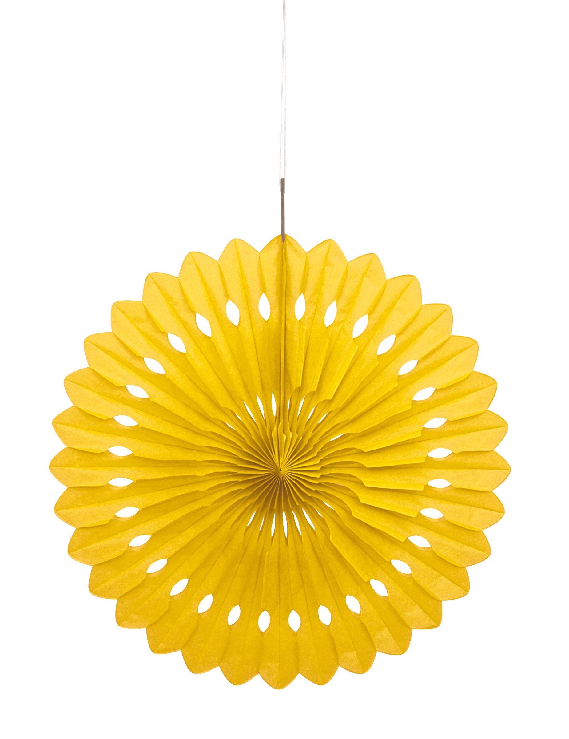 Това розетка в жълта хартия за кърпичка показва диаметър от 40 cm приблизително. Разполага с дискретен бял шнур за лесно окачване. Дизайнът му е подчертан от деликатни перфорации, предлагащи красива дантелен ефект и уникална яснота. Това висяща розетка ще донесе шикозна и цветна декорация от съществено значение за подобряване на рожден ден или един летен фестивал.