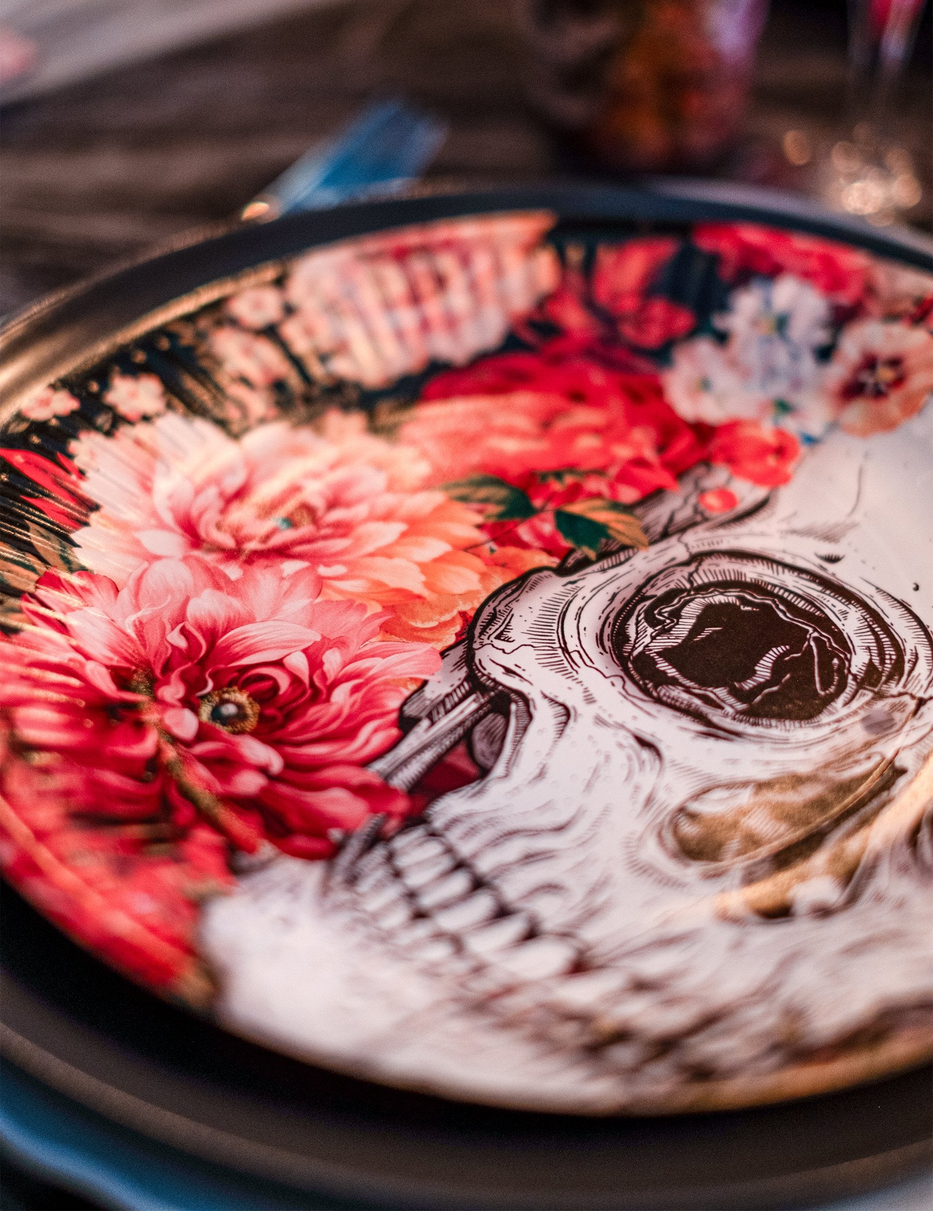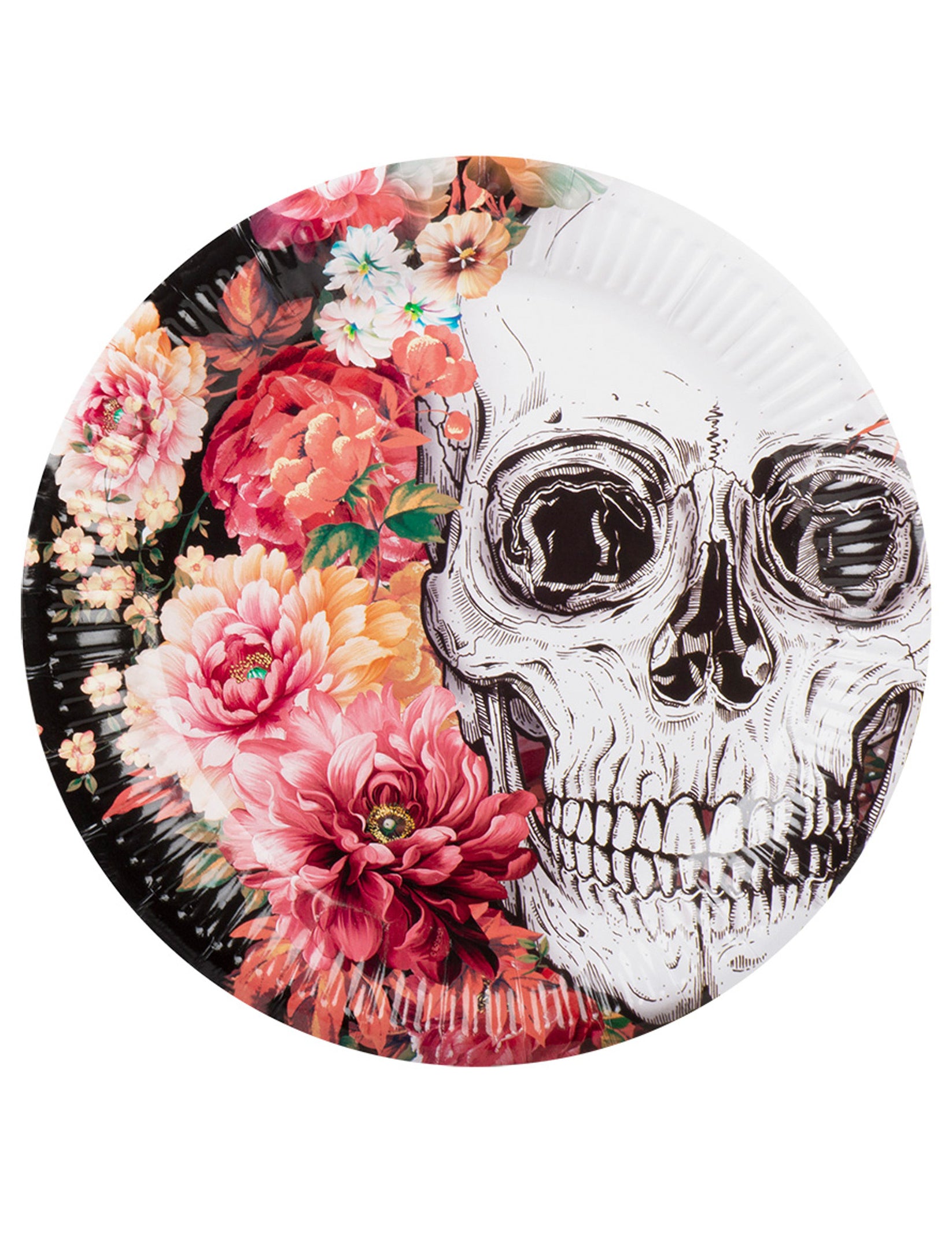 10 картонени чинии скелет на цветя 23 cm