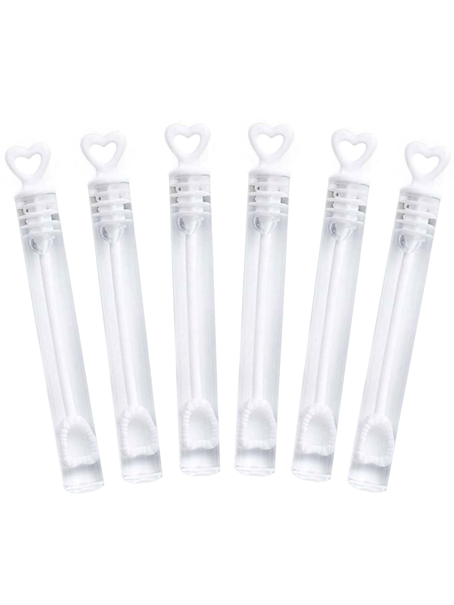 Apportez une touche de magie à votre événement avec ce lot de 6 flacons de bulles à savon. Chaque tube est surmonté d'un élégant bouchon en forme de coeur blanc assurant une fermeture parfaite. Prêts à l'emploi, ces accessoires contiennent déjà le produit : retirez simplement le bouchon muni d'une tige et soufflez pour créer une envolée de bulles. Ces flacons sont une attention idéale à distribuer aux invités lors de votre mariage pour célébrer votre union.