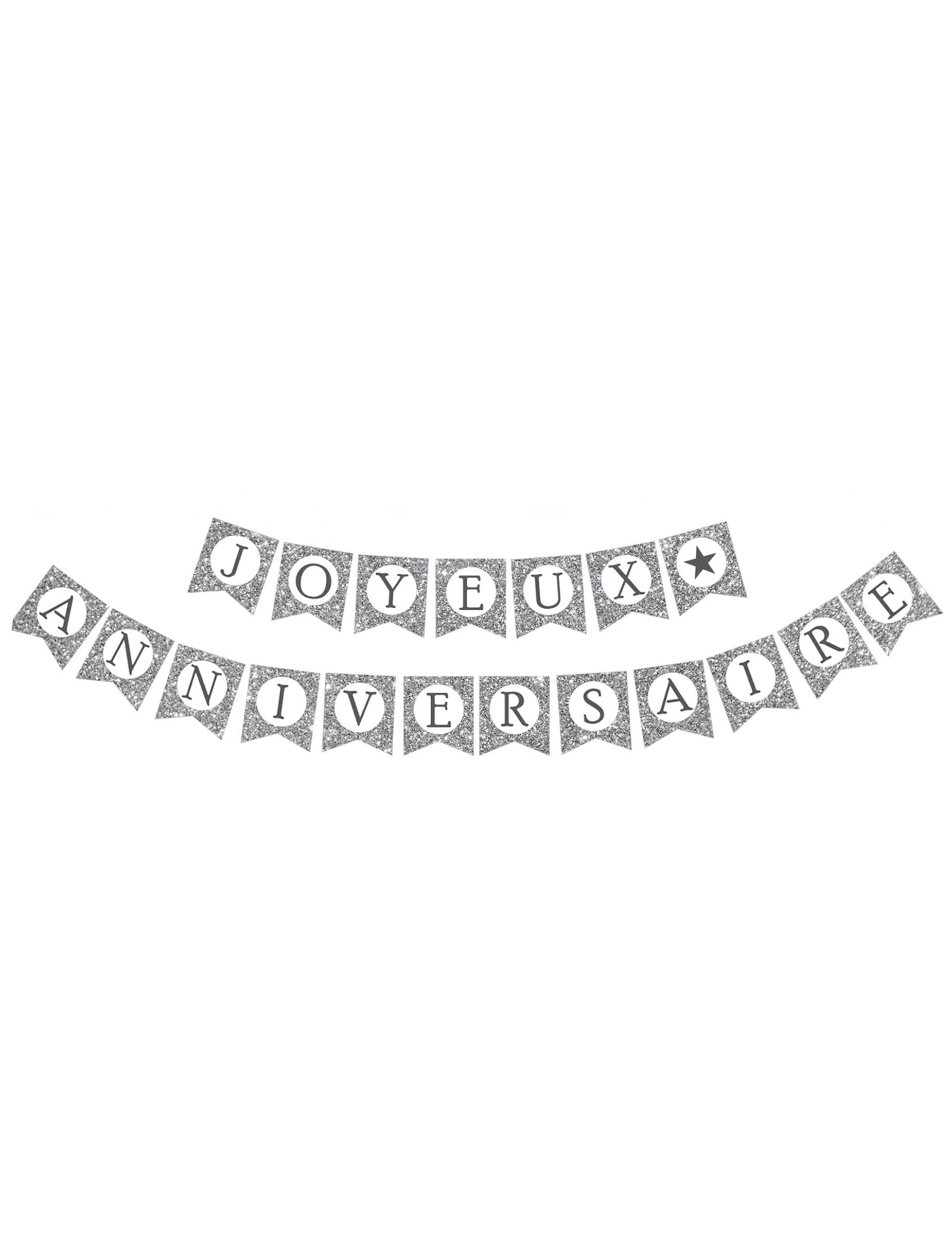 Този картон Гарланд за рожден ден е с дължина почти 5 метра. Тази гирлянда се състои от сиви панели с лъскав сребърен блясък с бял кръг със сребърна буква. Формулярът „Честит рожден ден“ за шикозно и лъскаво изобразяване! Ще бъде идеално за шикозен рожден ден!