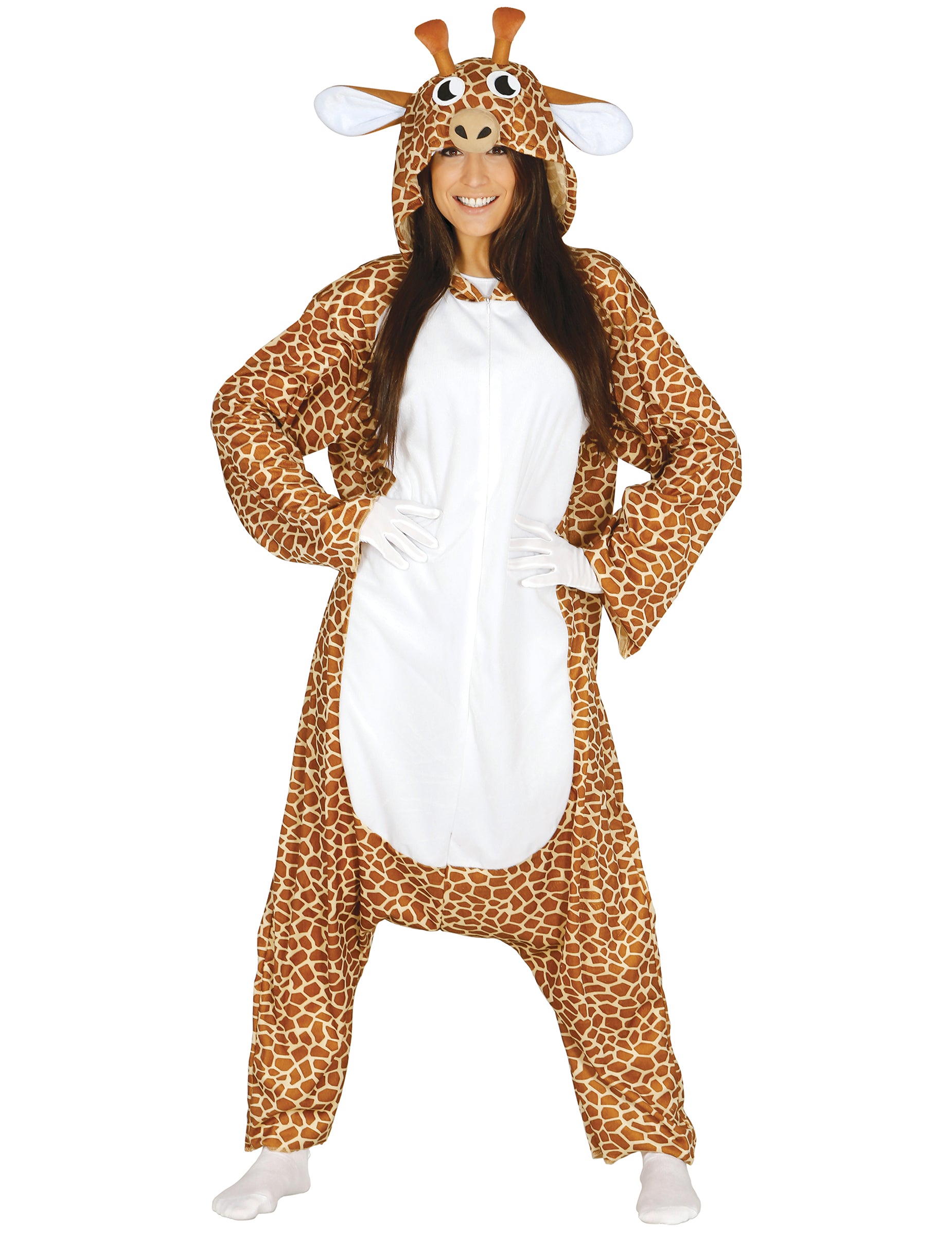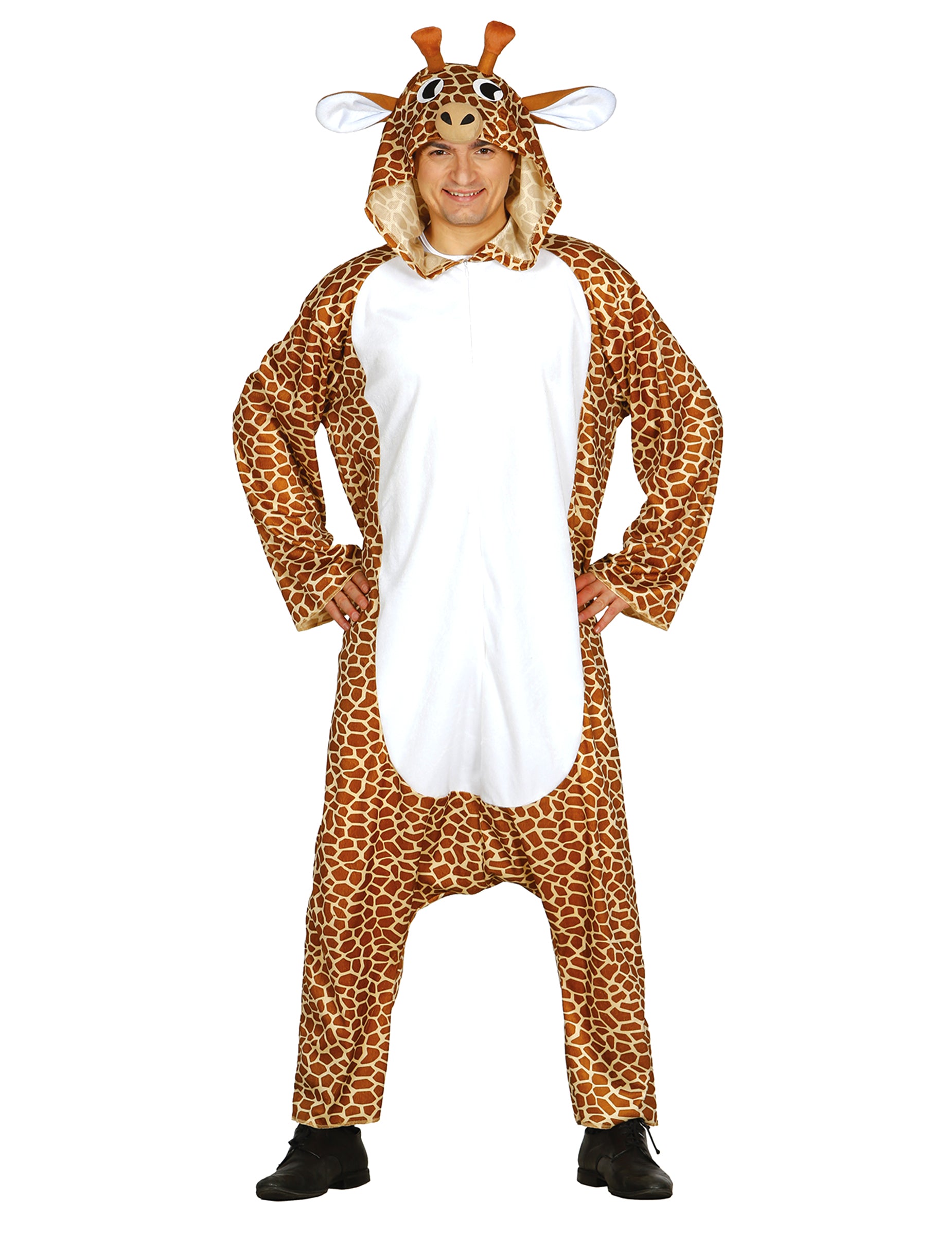 Този костюм за възрастни жираф е комбинация с качулка. Тази широка комбинация е отпечатана с козината жирафи с бяло коремче. Той е оборудван с цип отпред, за да го постави и затвори лесно. Тя също има качулка, преодоляна от глава на жираф за предполагаем животински стил! Този костюм на жирафа ще бъде идеален за тематична вечер на животни или хумор!