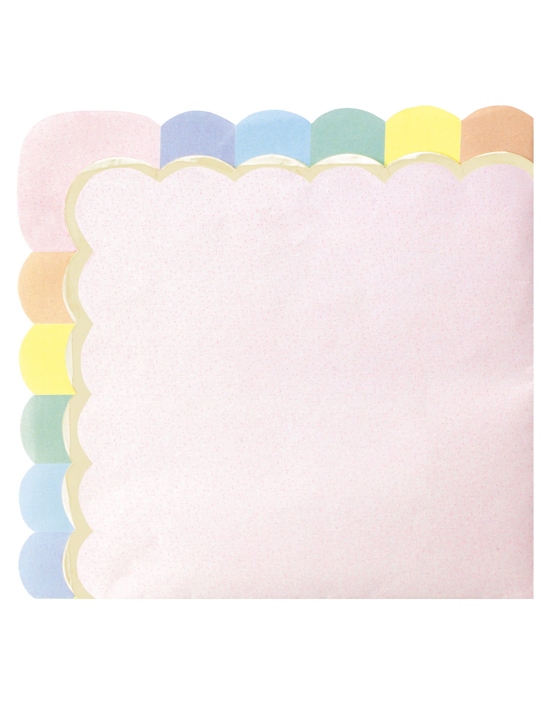 Тази партида е съставена от 16 хартиени кърпи с размери приблизително 33 х 33 см веднъж разгърнати. Кърпите са пастелни розови на цвят с дъгови ръбове. Тези цветни кърпи ще бъдат идеални за вашата маса за рожден ден.