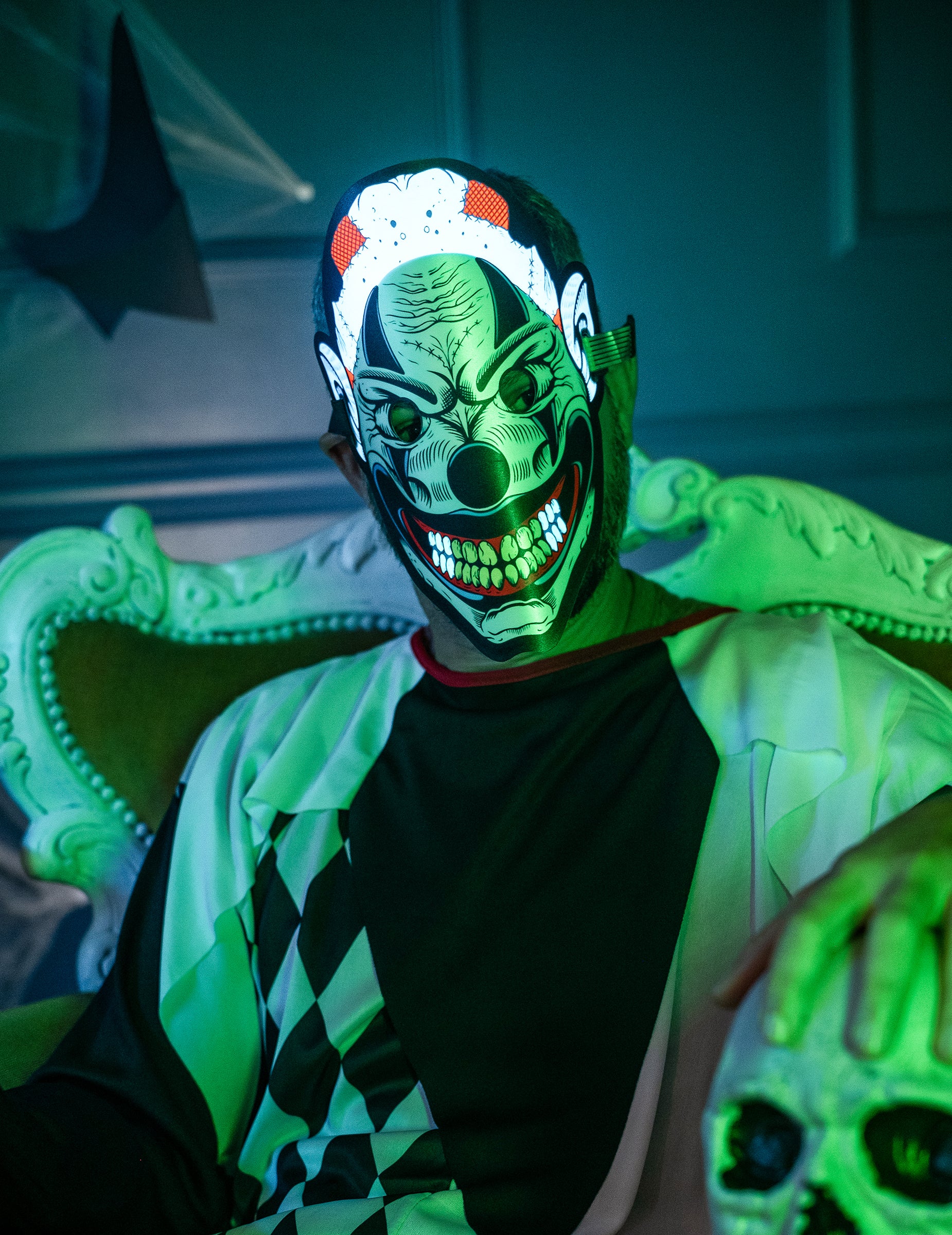 Тази маска на Joker Light с откриване на звук е за възрастни. Той се заема с външния вид на известния герой с голяма страшна усмивка и ужасяващия си грим. Малкото допълнително? Благодарение на случая си той светва до ритъма на музиката! Просто сложете 2 мача AA (не са включени) и звуковите сензори ще позволят на маската да светне! Поддържа се благодарение на гъста еластична около главата. Сърфирайте тенденцията с тази маска на Joker Light за вашата прикрита вечер на Хелоуин!