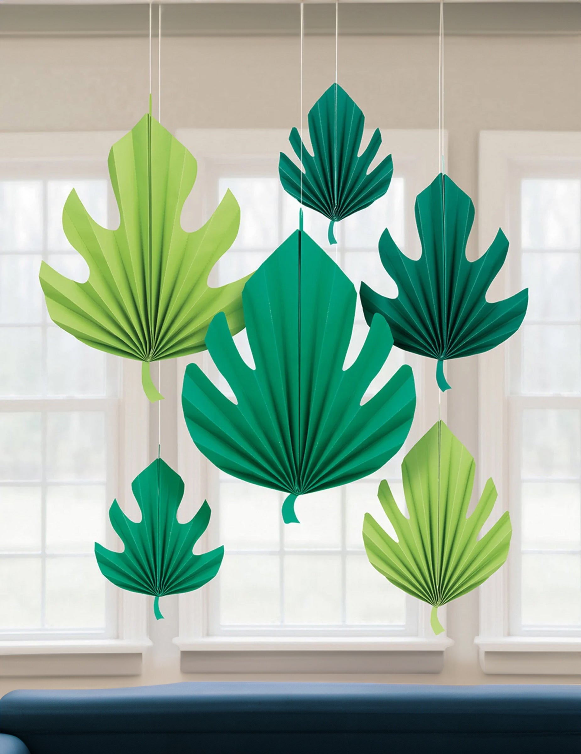 Apportez une touche d'exotisme avec ce set de 6 décorations à suspendre en carton robuste. Chaque pièce illustre de magnifiques feuilles tropicales aux nuances de vert variées. Les dimensions oscillent entre 20 et 40 cm pour créer un bel effet de volume. Ces feuilles à suspendre sublimeront l'ambiance d'un mariage, d'un anniversaire ou de toute autre fête tropicale réussie.