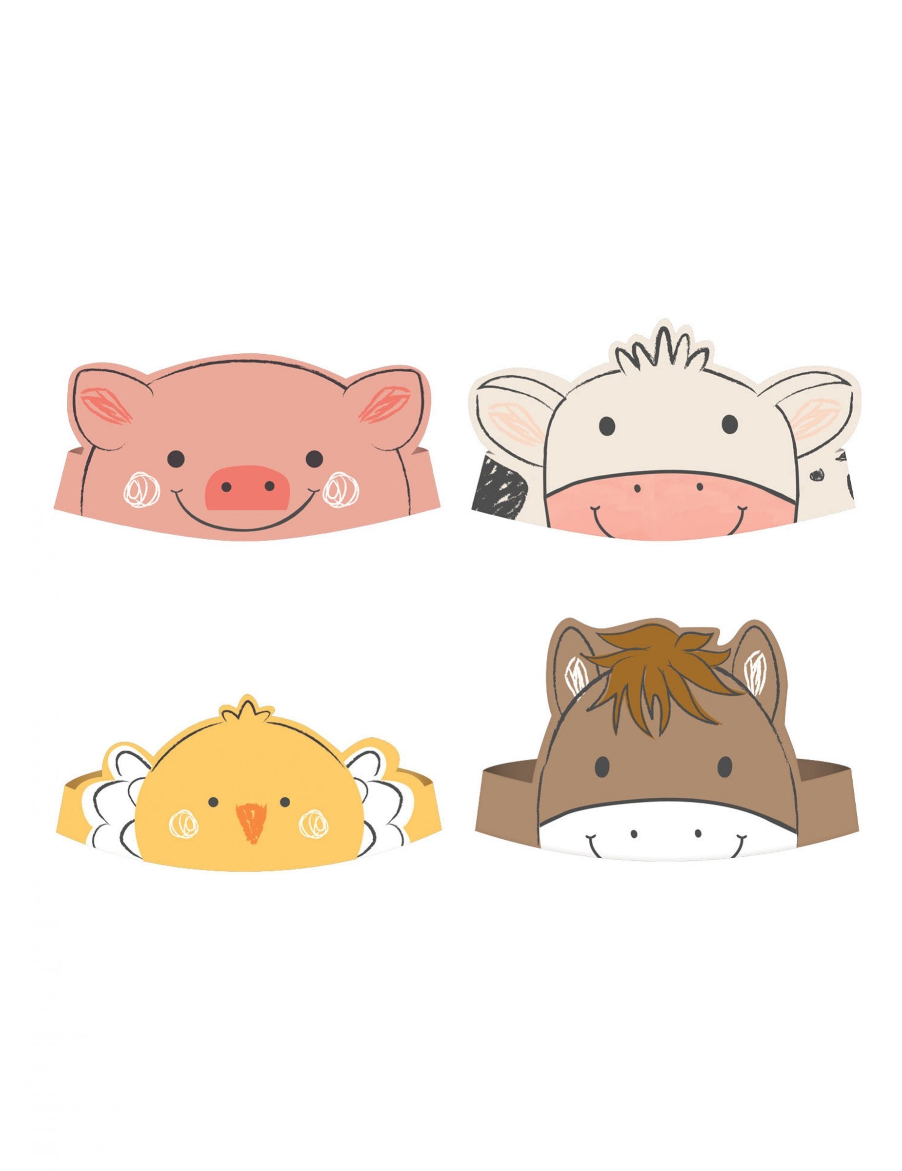 8 картонени парти шапки за рожден ден с фермерска тематика и животни