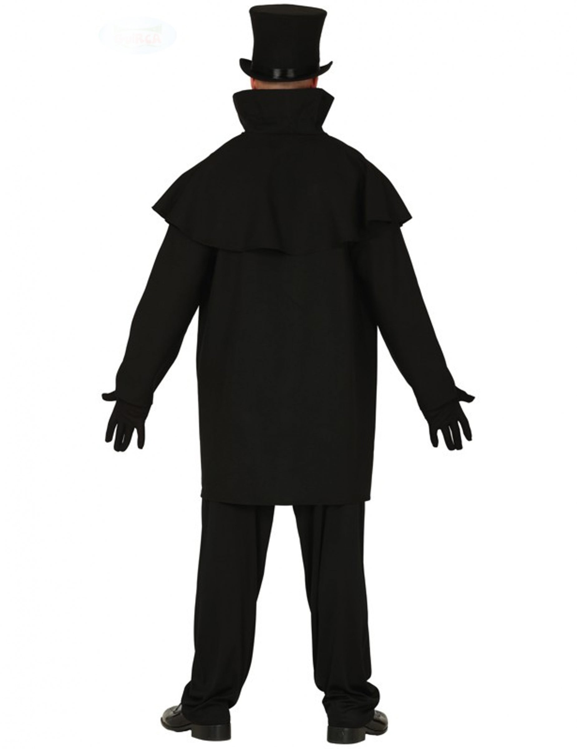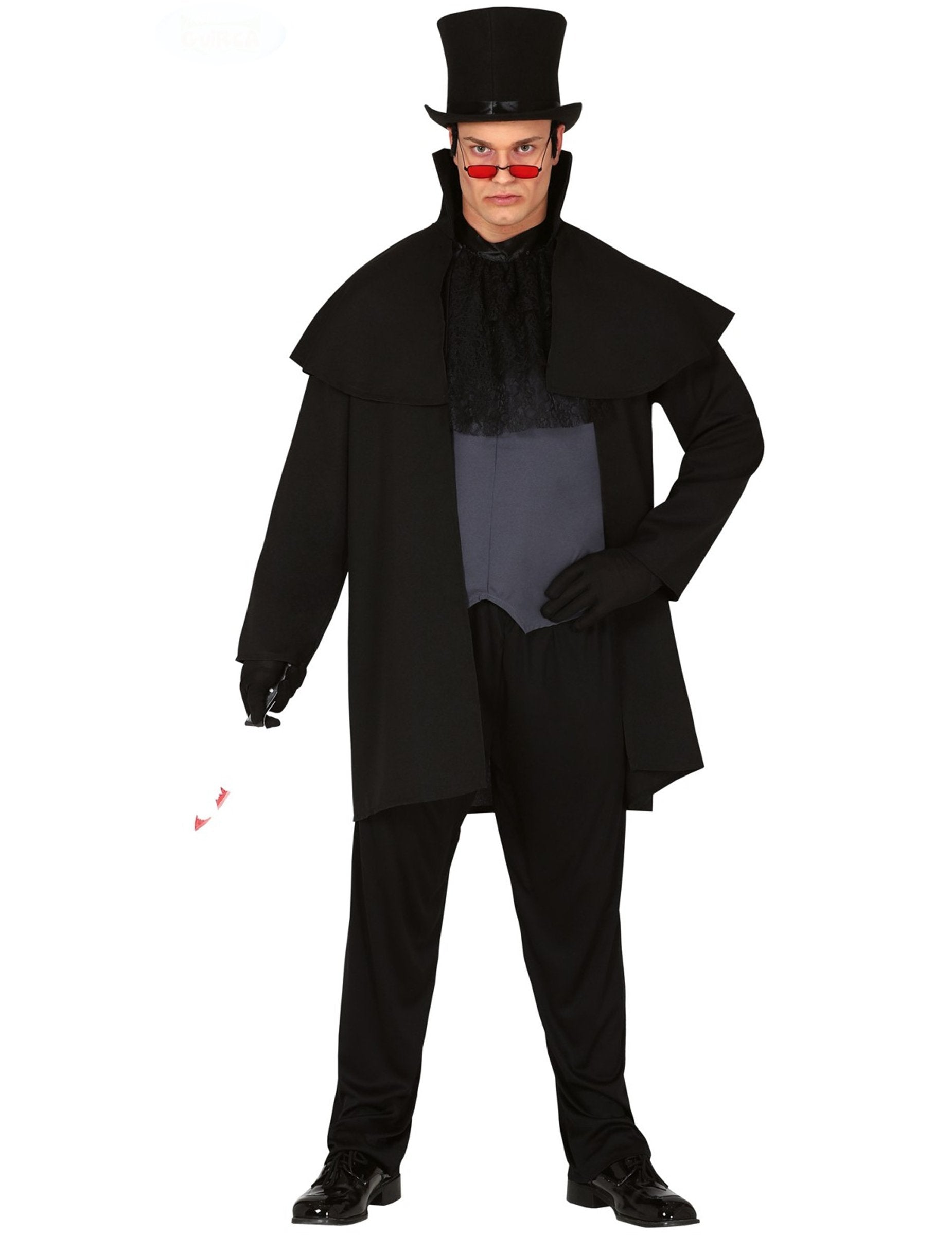 Тази маскировка за убийци от 19 век за мъже се състои от яке, панталони и жилетка за костюми с джабот. Панталоните и якето са черни и широки. Жилетката на костюма е сива и украсена с черна култура. Този реколта костюм ще бъде идеален за елегантна и ужасяваща Хелоуин вечер!