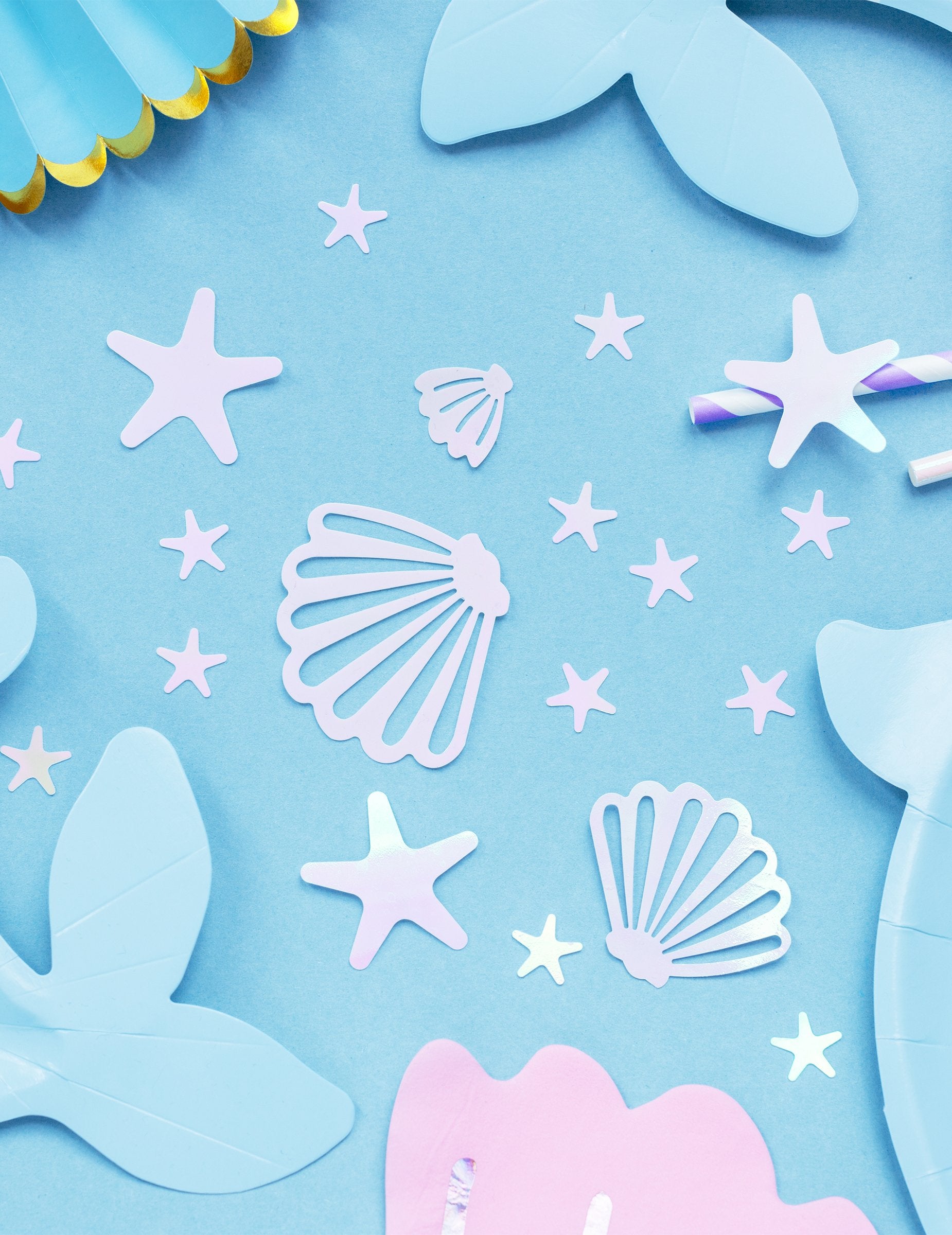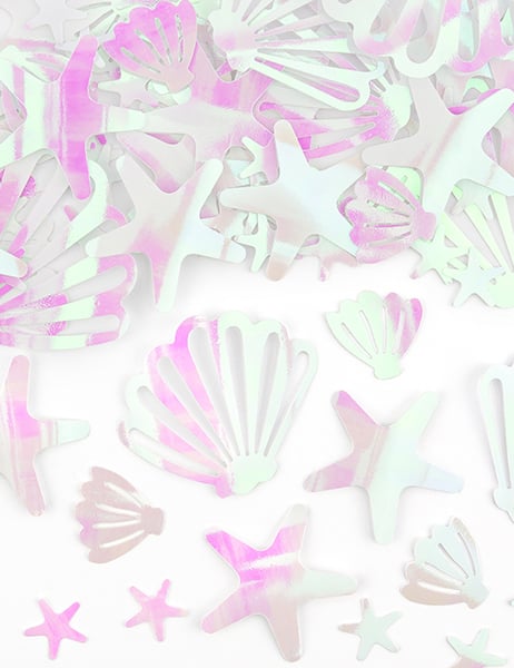 Подобрете декора си с това саше от 23 г конфети с магически отражения. Този комплект съдържа морски черупки с размери между 2 и 5,5 cm както и морска звезда от 1,5 до 4 cm, Всичко в елегантен преливащ розов оттенък. Удобно е, че са включени 6 двустранно залепващи ленти за лесно закрепване на вашите декорации. Това е идеалният аксесоар за... рожден ден успешен по темата за морското дъно.