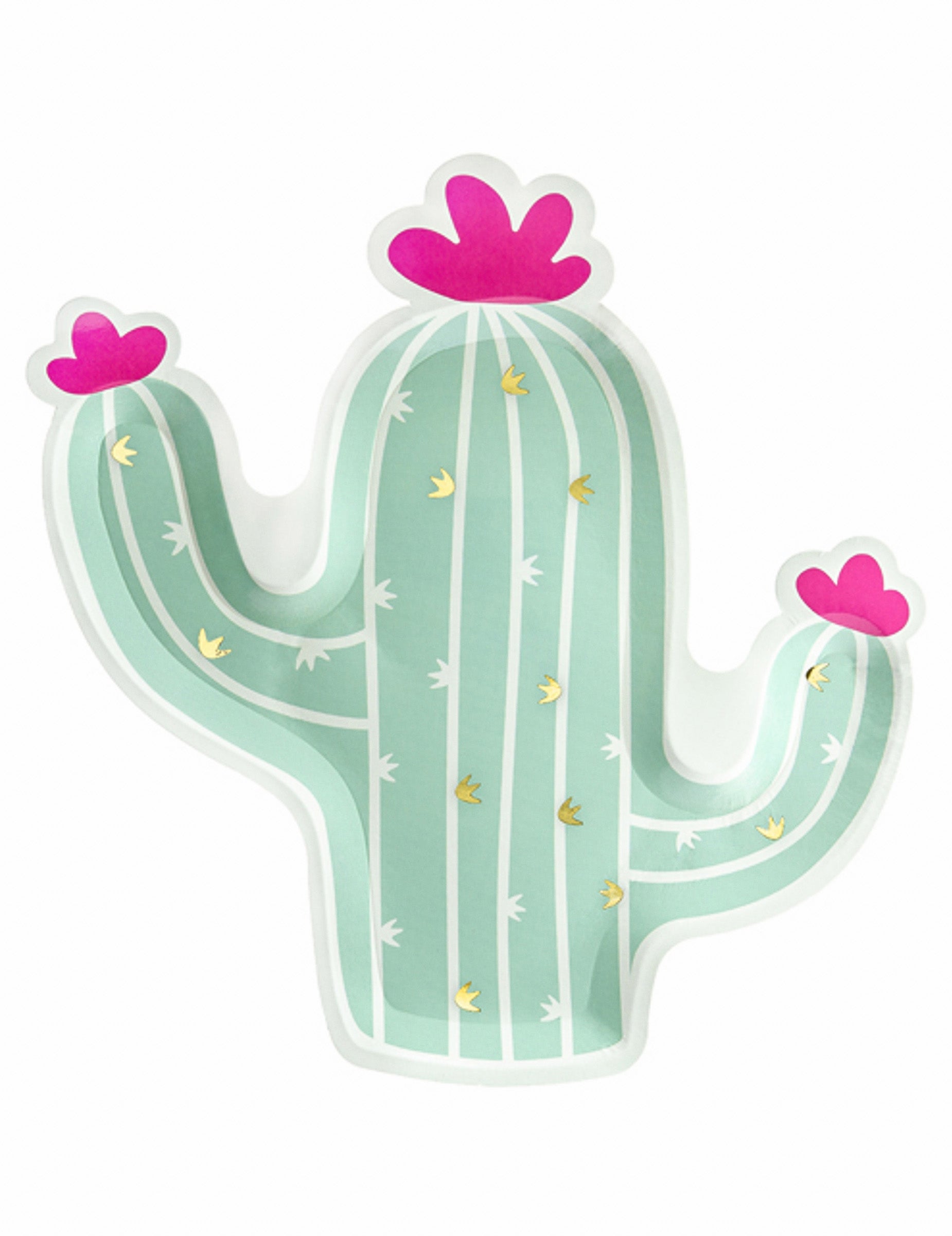6 картонени чинии с форма на кактус в цветовете мента, фуксия и златисто, 23 x 24 cm