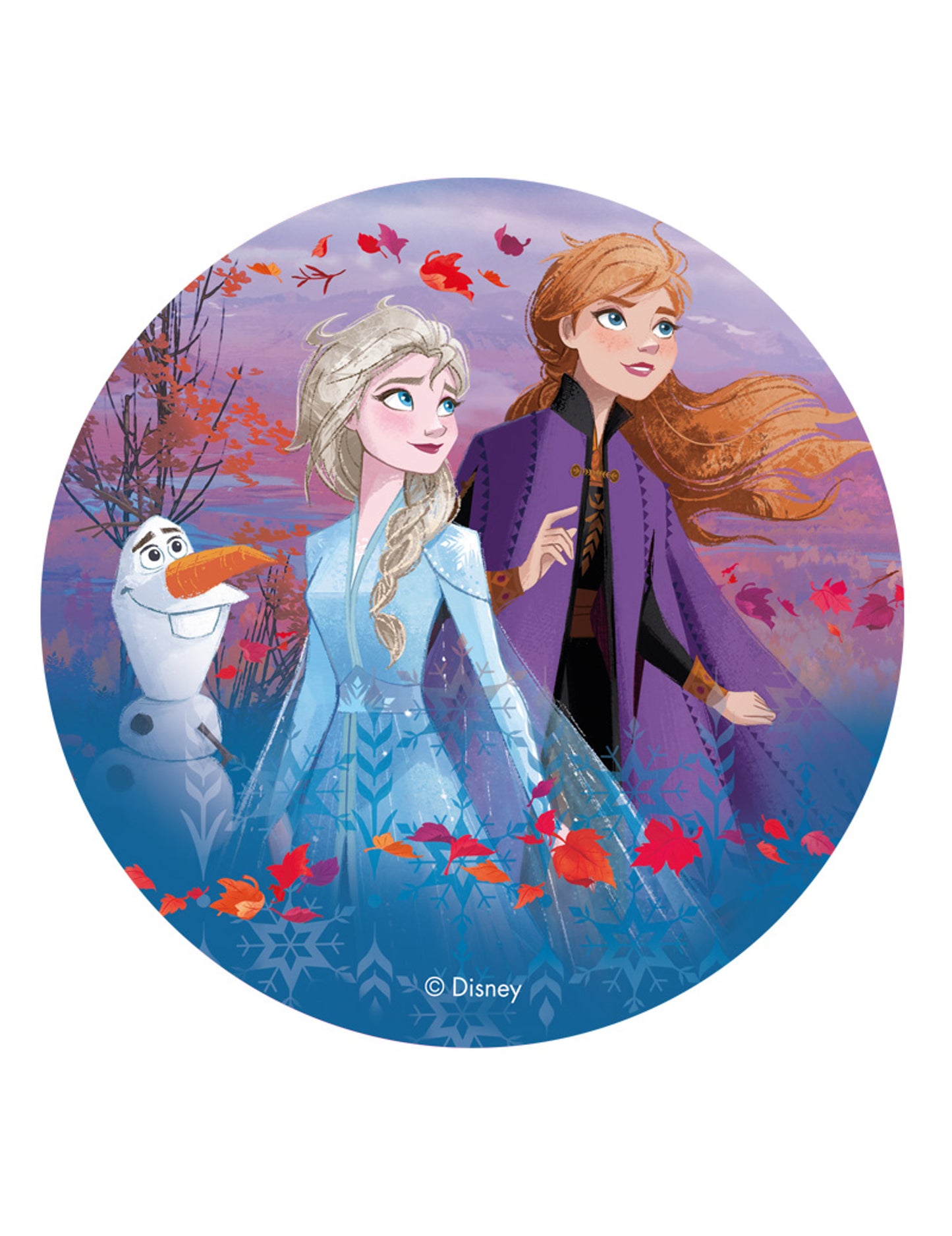 Този азимен диск под официален лиценз Snow Queen 2 е с диаметър приблизително 20 cm. Тежи 10 грама. Той е в ефигията на героите Елза, Анна и Олаф с цветове на есента. Този захарен диск ще бъде идеалната декорация на торта за рождения ден на дъщеря ви по темата на The Snow Queen 2! Съставки: Картофено нишесте, вода, зехтин, малтодекстрин, цветове E102, E110, E122, E133, E151 Енергийни стойности: 360 kcal/100 g