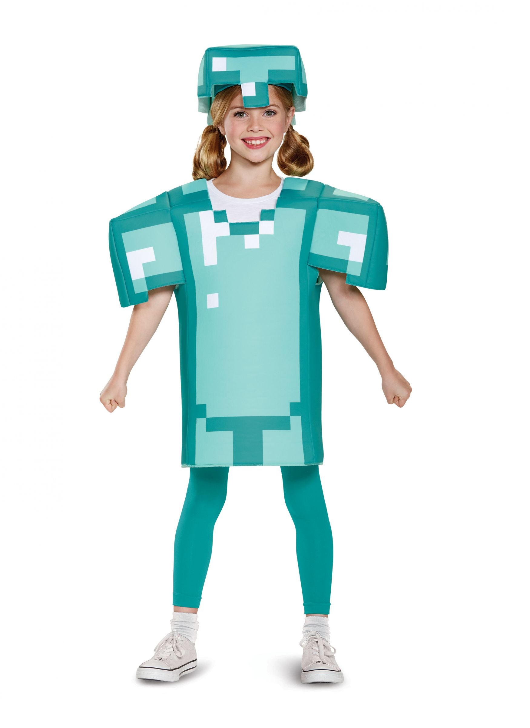 Този детски костюм на Minecraft е под официален лиценз. Тя включва тениска и капачка (панталони и обувки не са включени). Тениската е направена в леко подплатена материя, която му позволява да носи този 3D ефект. Тя е синя, със светлосини и бели модели, които представляват пикселиран дизайн на Minecraft Universe. Шапката съвпада с тениската. Този костюм ще бъде идеален за всички малки фенове на видеоигрите и по -специално в света на Minecraft.