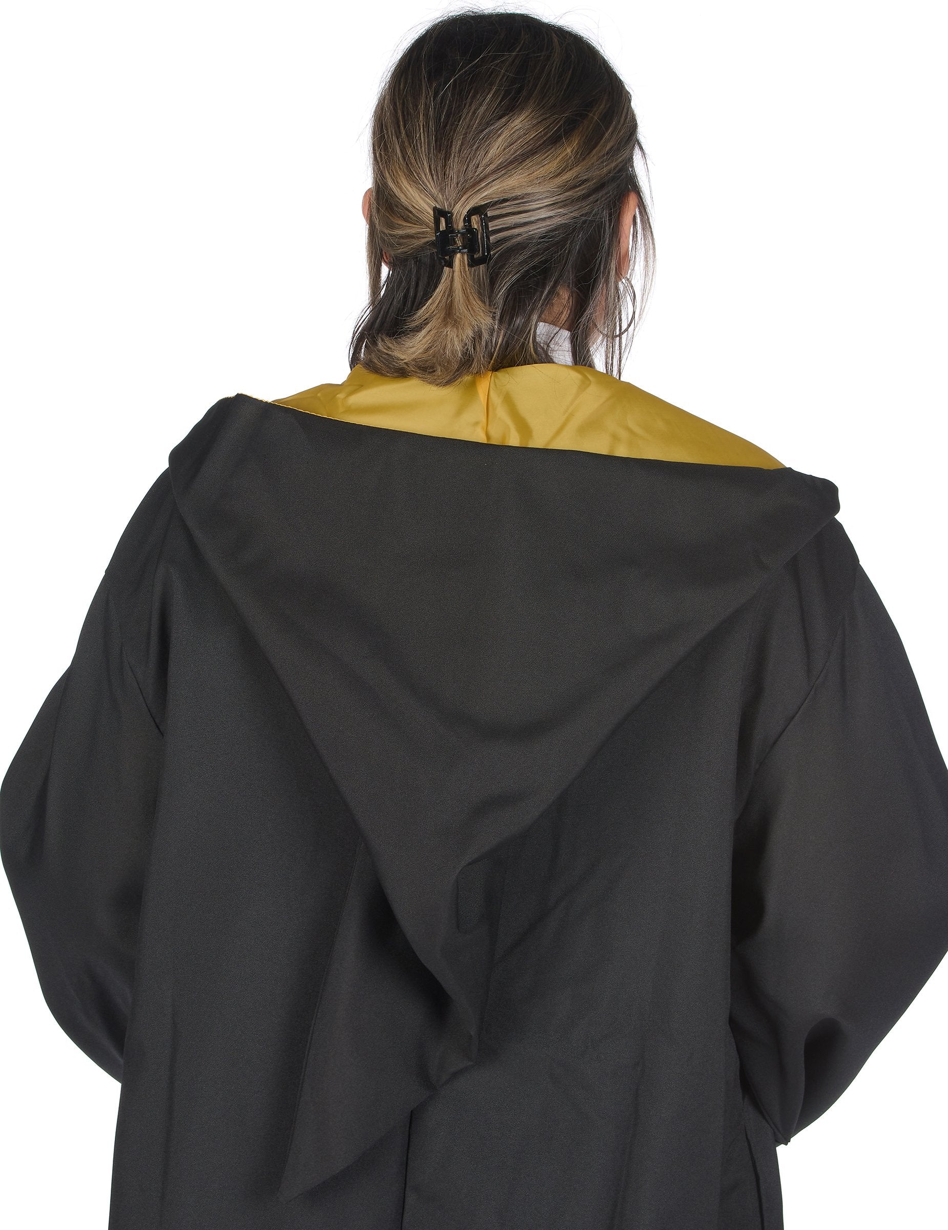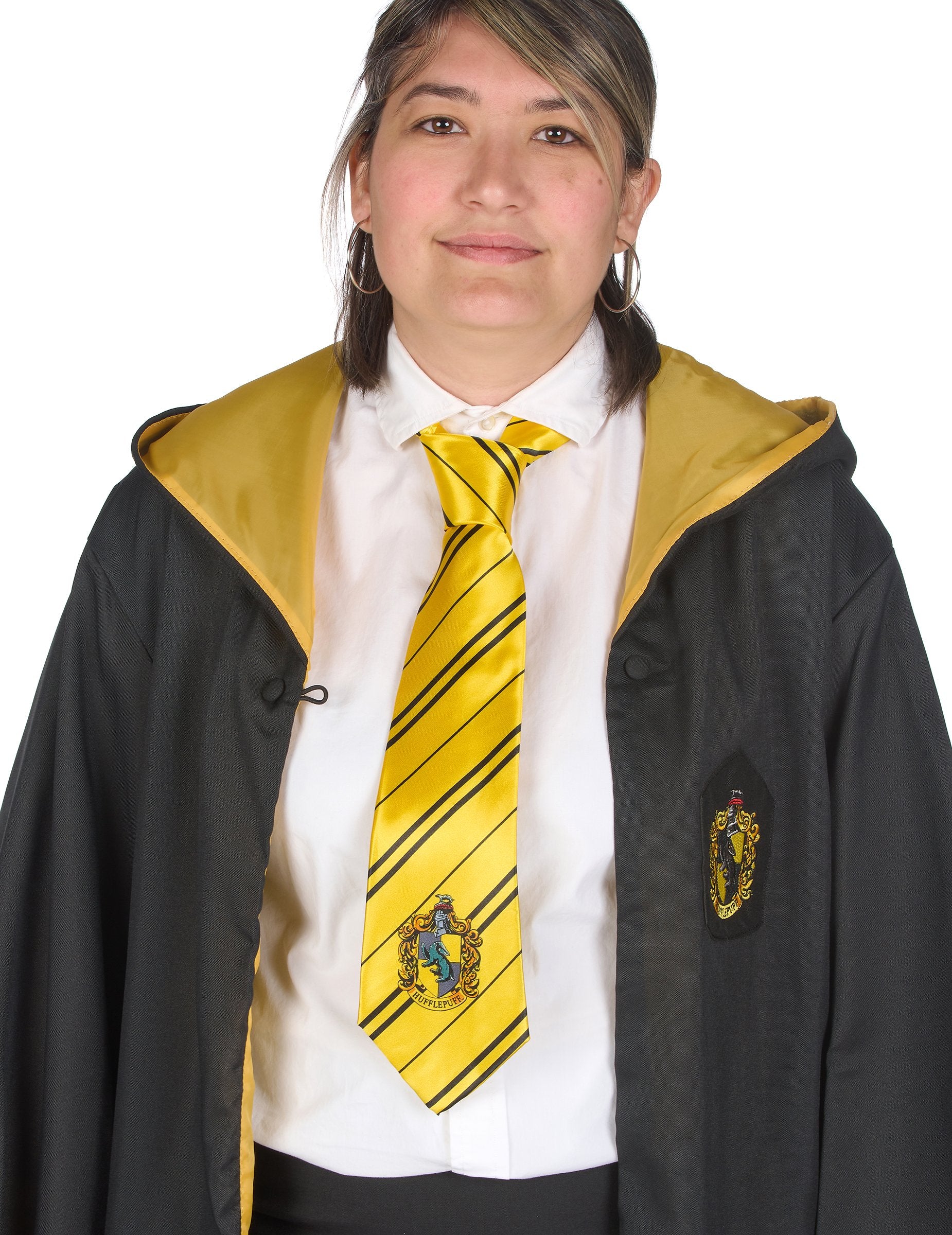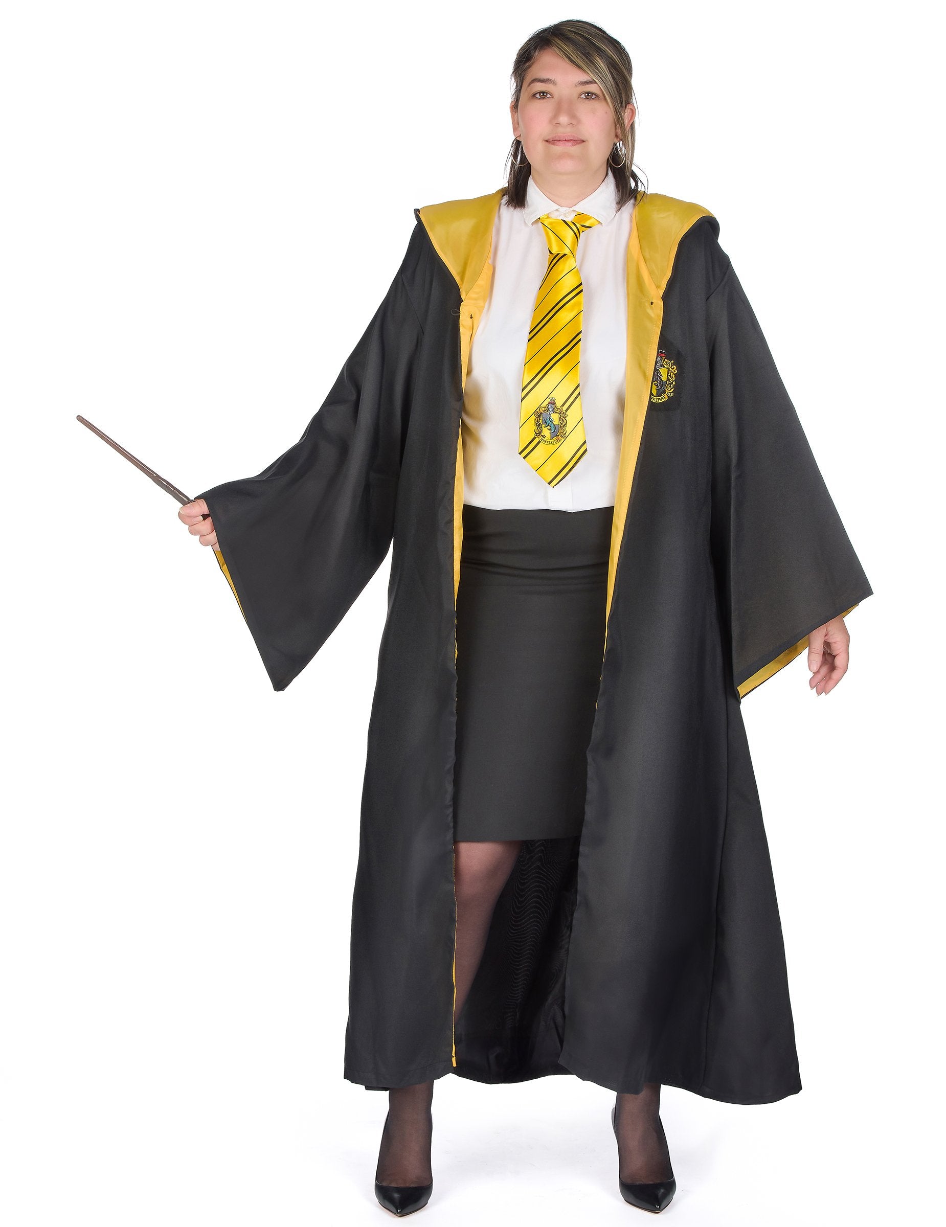 Тази рокля на скъпата магьосница е под официален лиценз за Хари Потър. Роклята на магьосника е черна с жълта подплата в качулката и ръкавите. Значката на къщата на домакините присъства на нивото на гърдите. Роклята на този магьосник е поставена като яке и се затваря отпред благодарение на бутон. Той ще бъде идеален за смяна на магьосника от къщата Pouffle за вечер на Хари Потър.