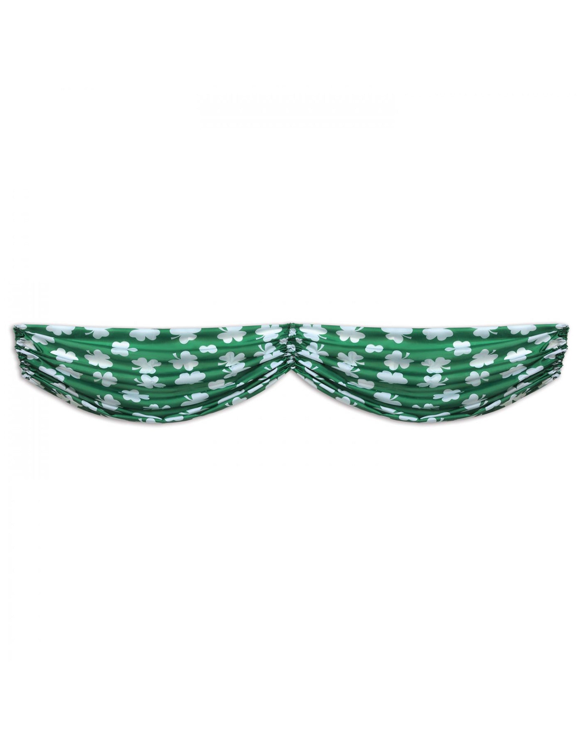 Този Сен Патрик Гарланд с размери приблизително 150 см дължина. Той представлява зелена плисирана материя, с модели на бели детелини. Тази гирлянда ще бъде идеална за завършване на декорацията на вашата стая вечерта на Сейнт Патрик.