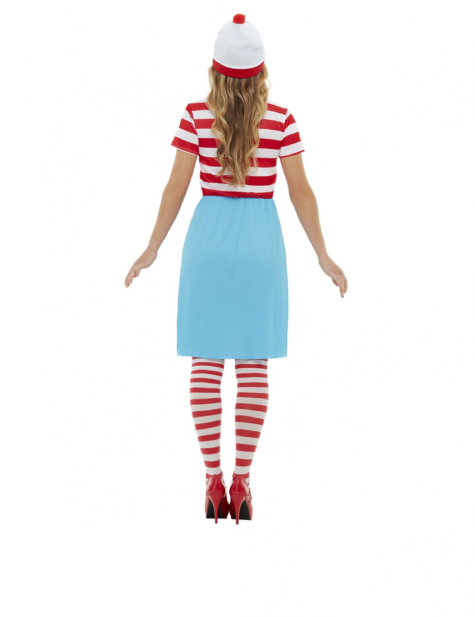 Откъде е Чарли? За жените се състои от рокля, шапка и чифт очила (чорапогащи и обувки не са включени). Върхът на рона е с бели и червени ивици. Дъното на роклята е светло синьо. Кафяв колан е пришит в кръста. Шапката е бяла с червен помпом и червена лента в основата си. Очилата без стъкло са в черна пластмаса. Те са кръгли. Този пълен костюм ще бъде перфектен за въплъщение на женската версия на известния Чарли по повод карнавала.