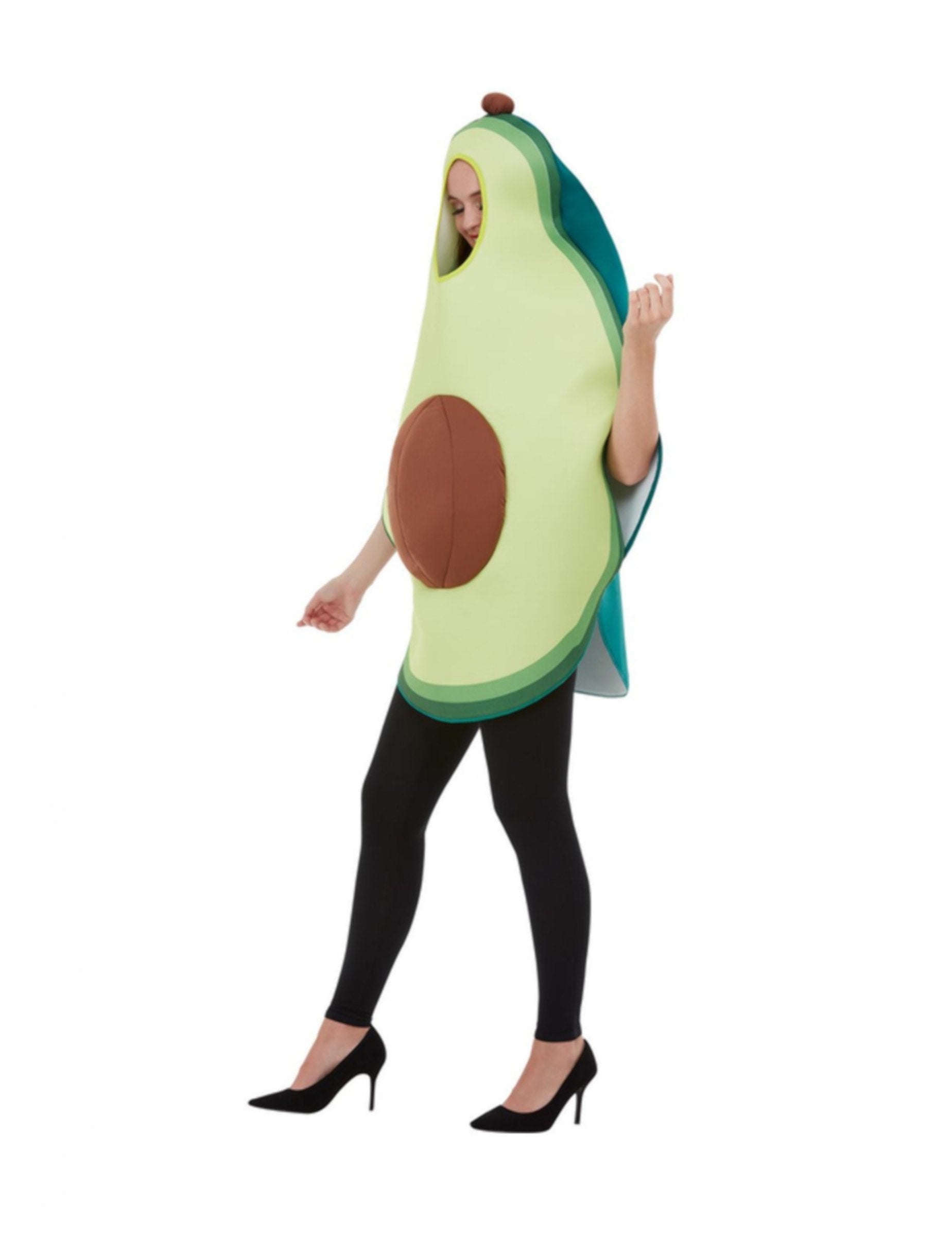 Този костюм за възрастни авокадо се състои от туника (чорапогащи и обувки не са включени). Туниката е под формата на адвокат. Отзад тя е обикновена зелена. Отпред е светло зелено с кафяв кръг, който да представлява ядрото на адвоката. В горната част на туниката присъства отвор, за да преминете главата ви. Този костюм ще бъде перфектен да бъде най -оригиналният от партито по повод карнавала.