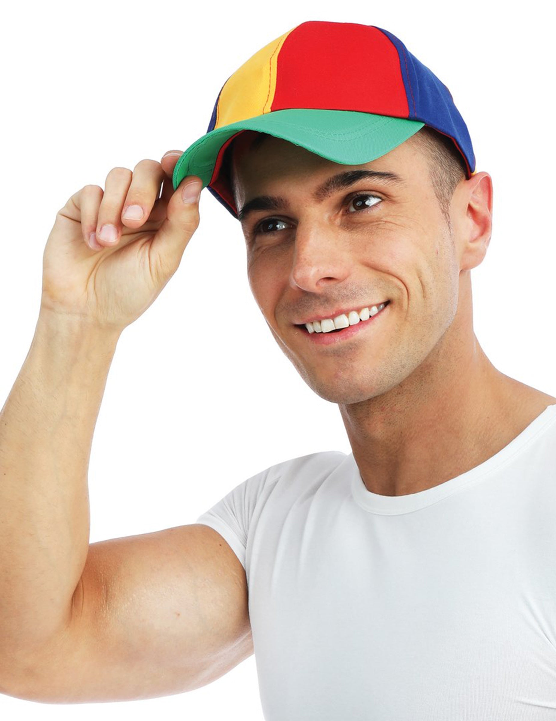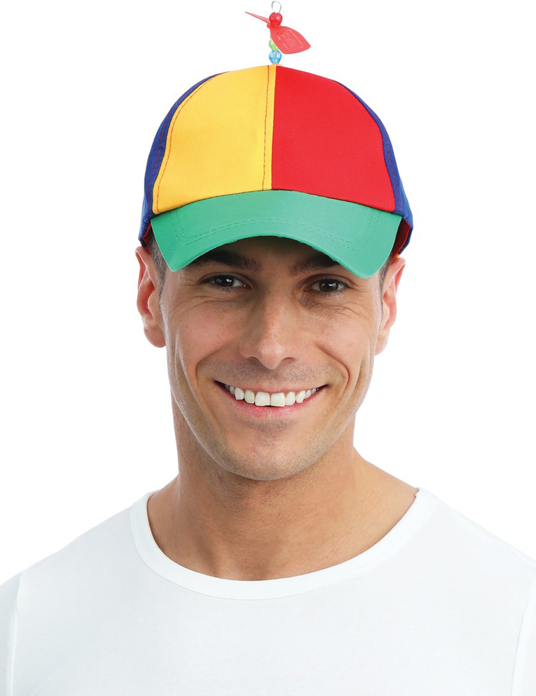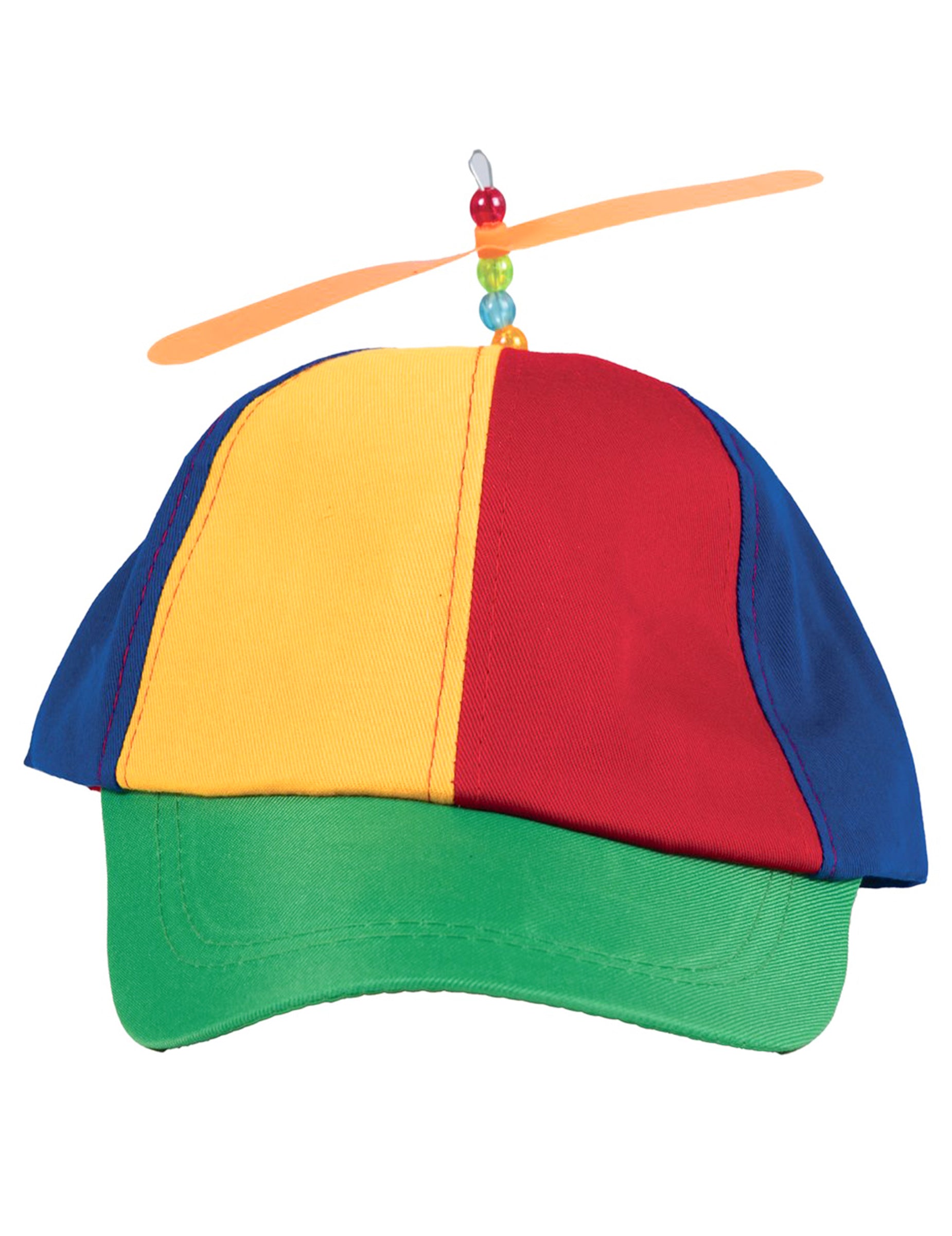 Тази фантазия е за възрастни (очилата не са включени). Той е изработен от тъкан от различни цветове и има зелен козирка. Витлото е фиксирано в горната част на капачката, с цветни перли. Тази шапка ще бъде перфектна, за да внесе хумористично докосване до вашия костюм в деня на карнавала.