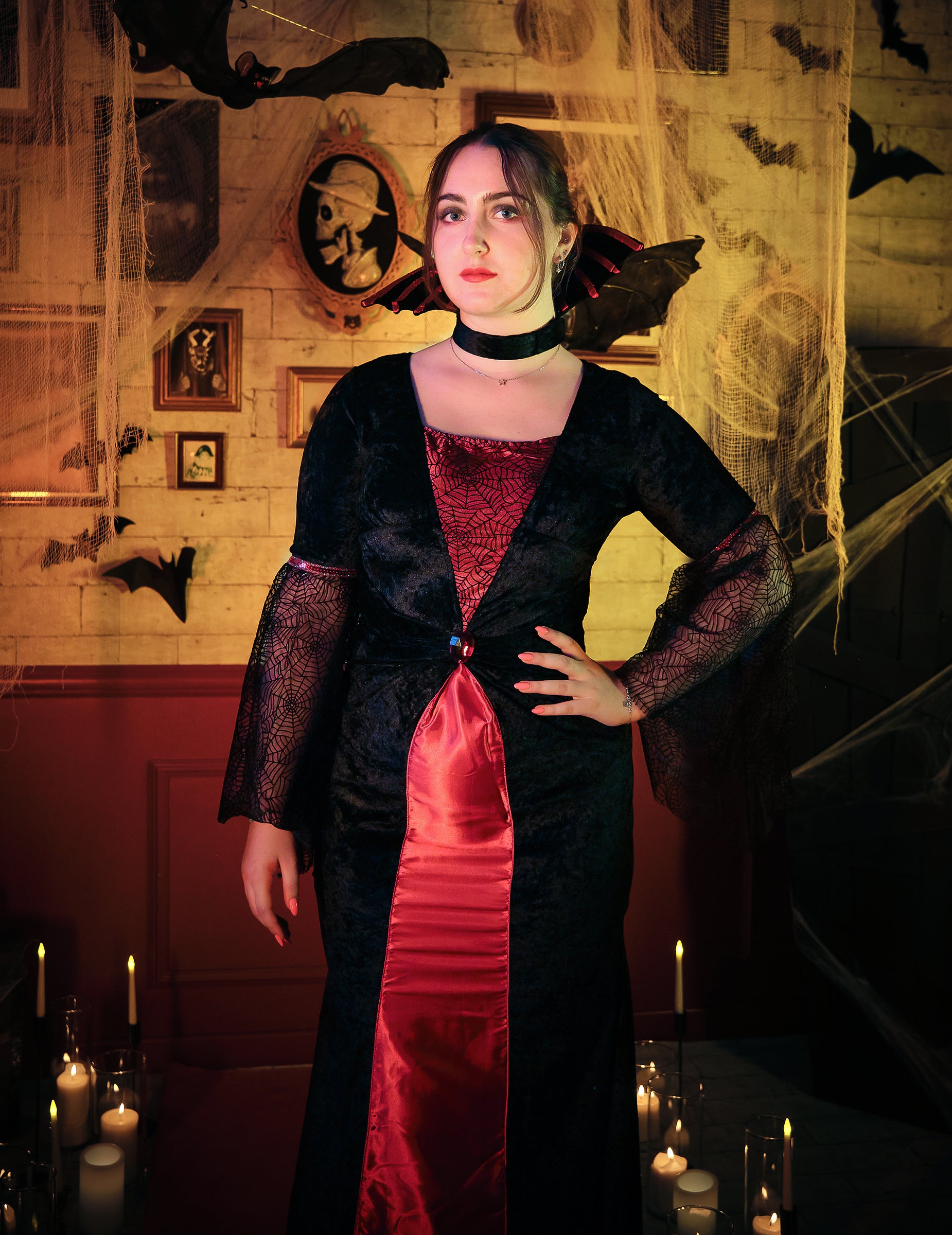Бъдете най-елегантната с този червено-черен костюм на вампир за вашето хелоуин парти!
