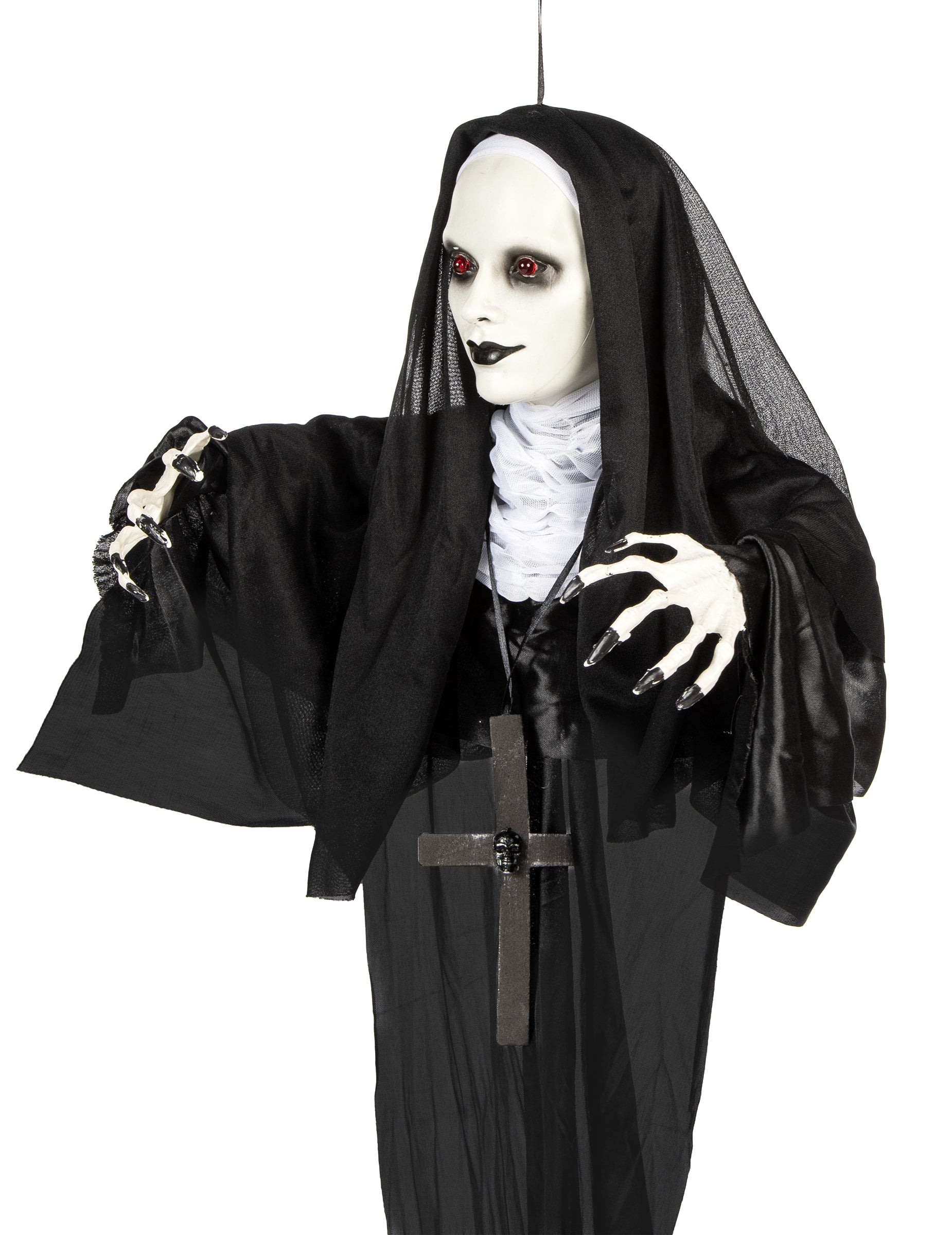 Лицето на монахинята е бяло, с черна уста и очни ръбове. Скелетните ѝ ръце са също толкова бледи. Тя носи огърлица с голям черен кръст. Очите ѝ светят в тъмното и стават червени, когато са включени. Работи с 3 батерии LR44 (включени са).