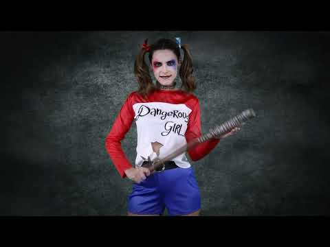 Този опасен момичешки костюм е за жени и се състои от топ, къси панталони и колан. Той се появява на появата на известен филмов герой и комикси. Най -горните дълги ръкави са червени и бели с надписа „Опасно момиче“, написан в черно в центъра. Дъното на върха е разкъсано, за да даде ефекта „непокорен“ за прикриване. Шортите са изцяло сини, а черен колан със златен контур идва да финализира външния вид на лошото момиче. Преобразувайте се в най -непокорното момиче в киното с това опасно момиче маскиране!