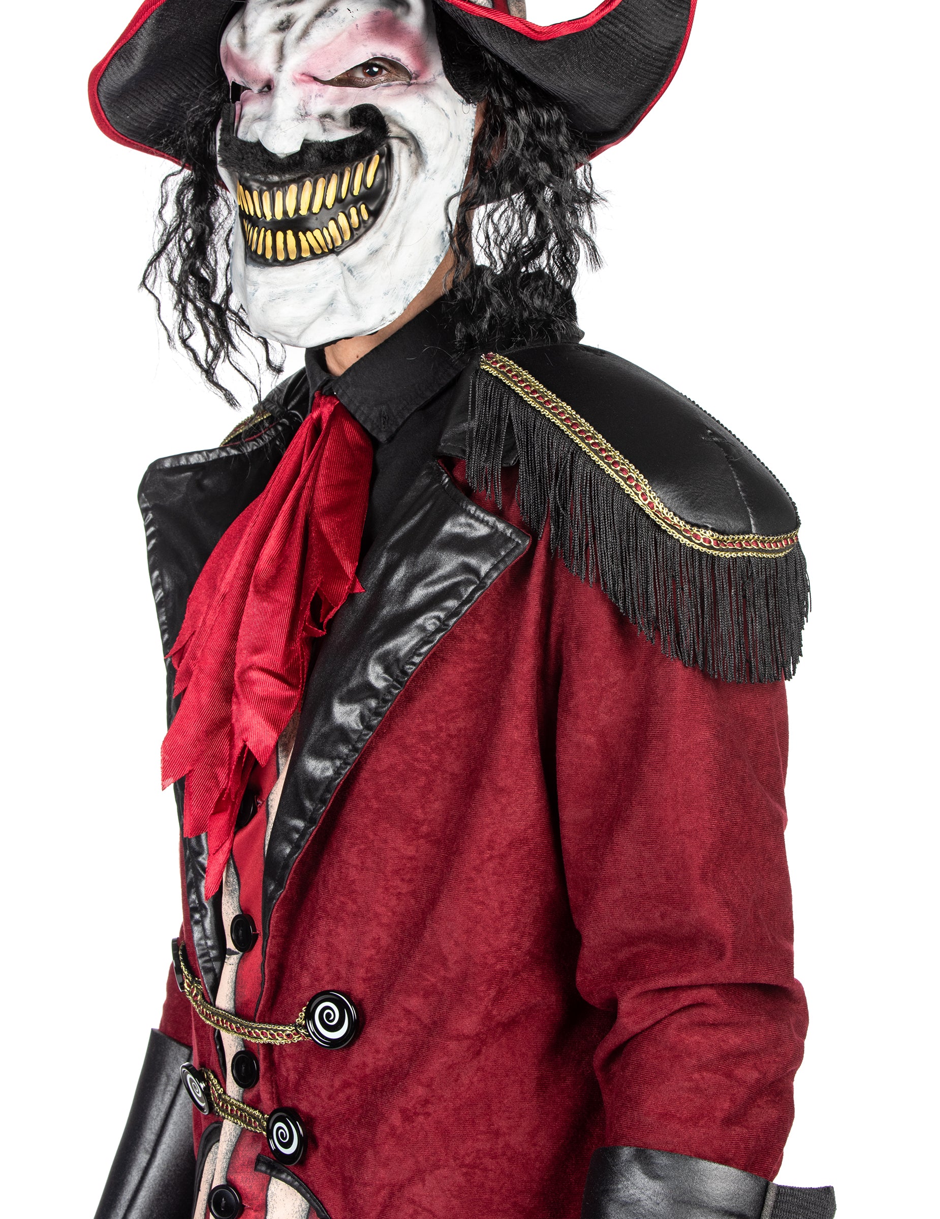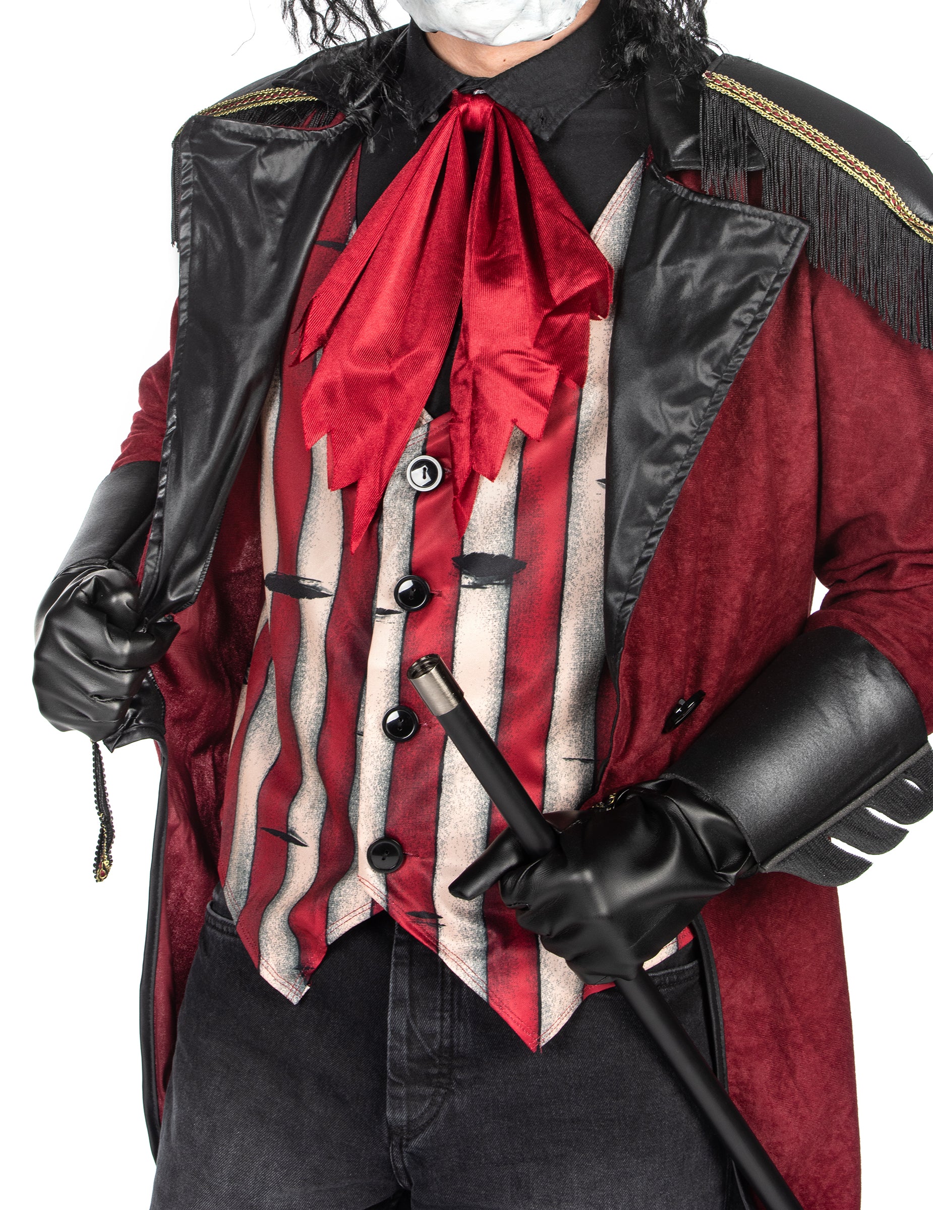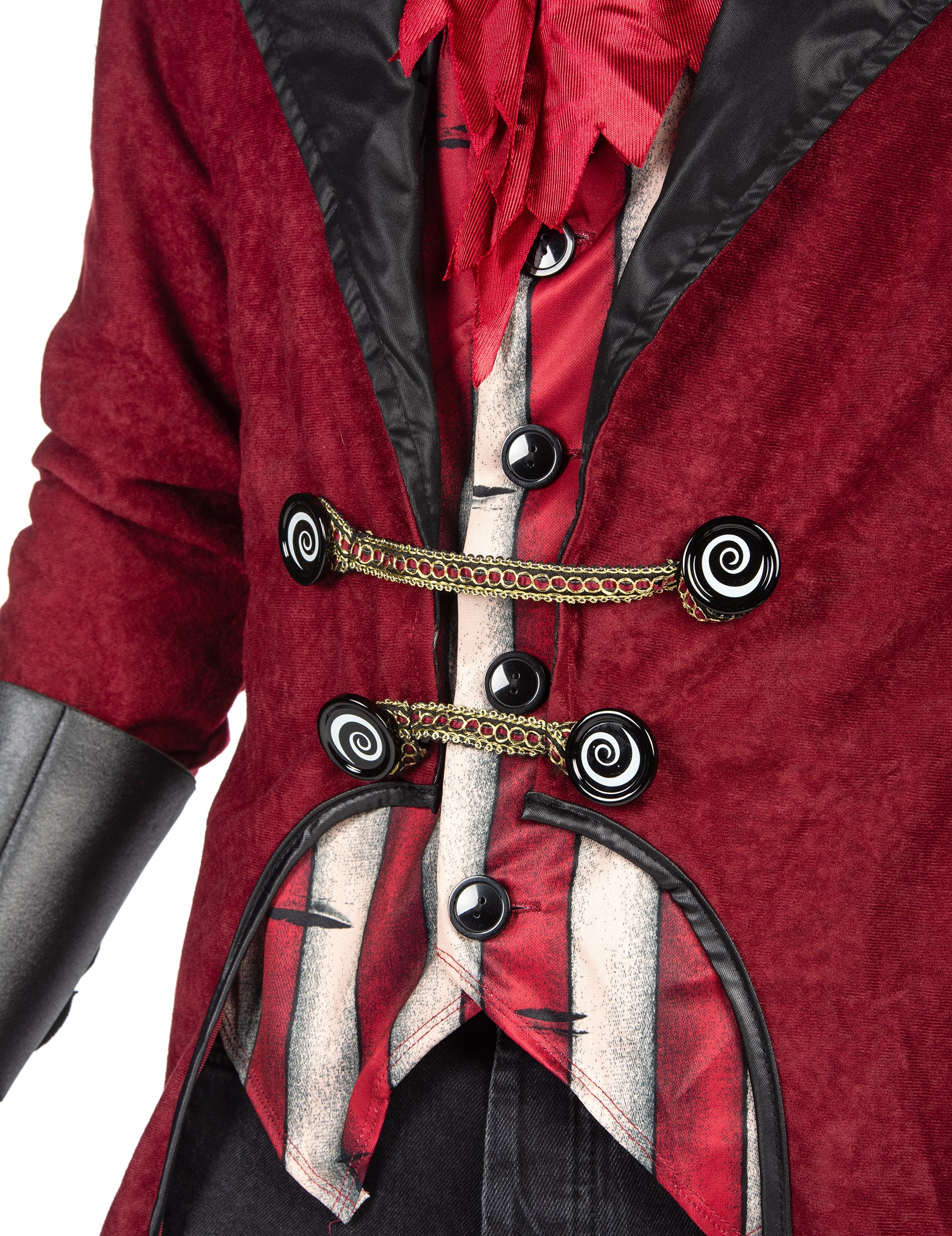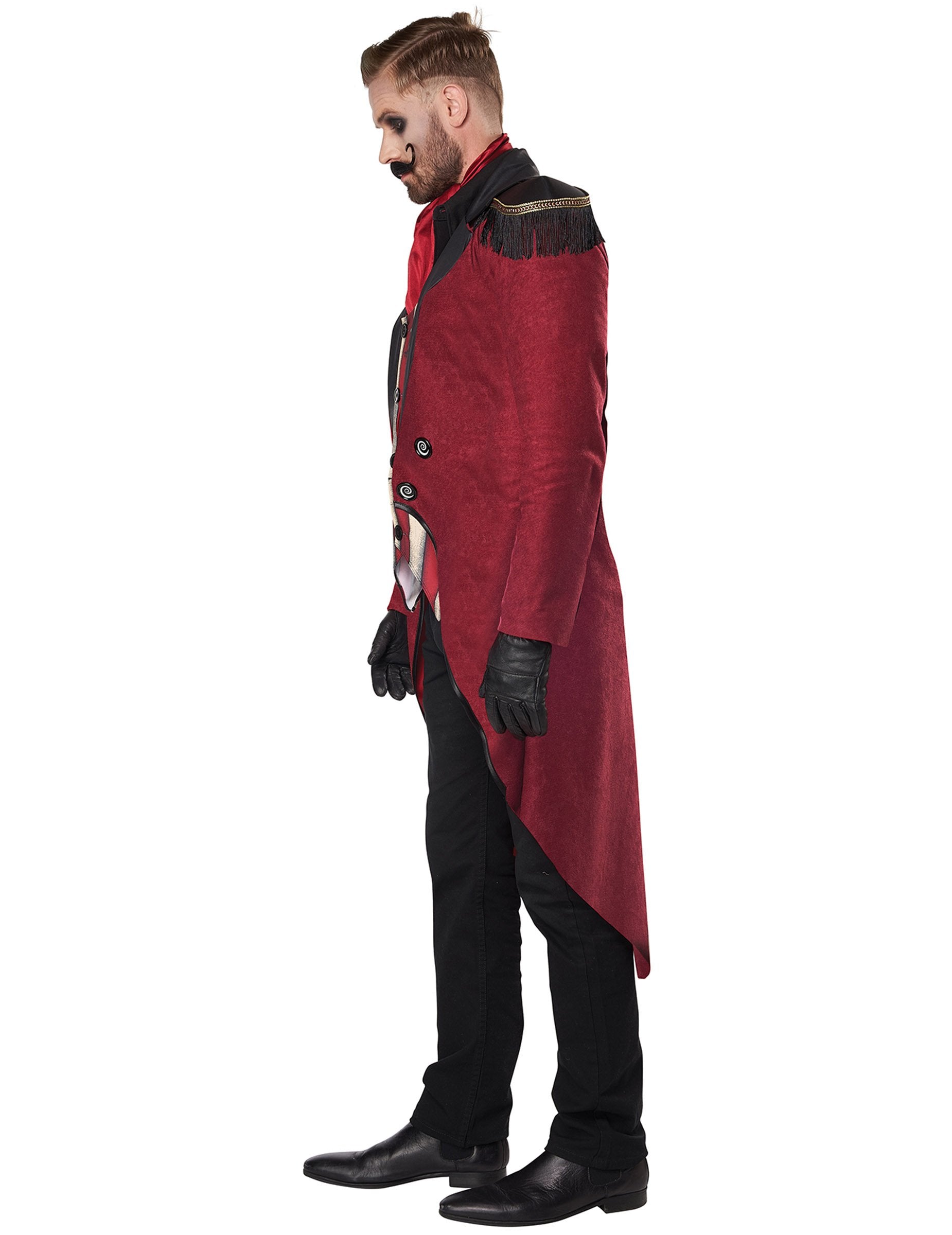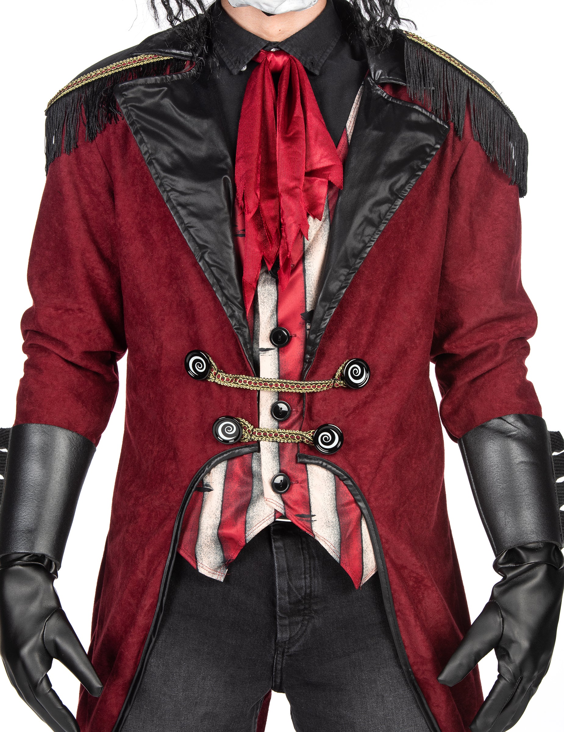 Сакото е червено с опашка и черни еполети, а елекът, който се носи под сакото, е на червени, сиви и бели райета. За да бъдете истински укротител, сложете черно-червената яка, която пасва на костюма.