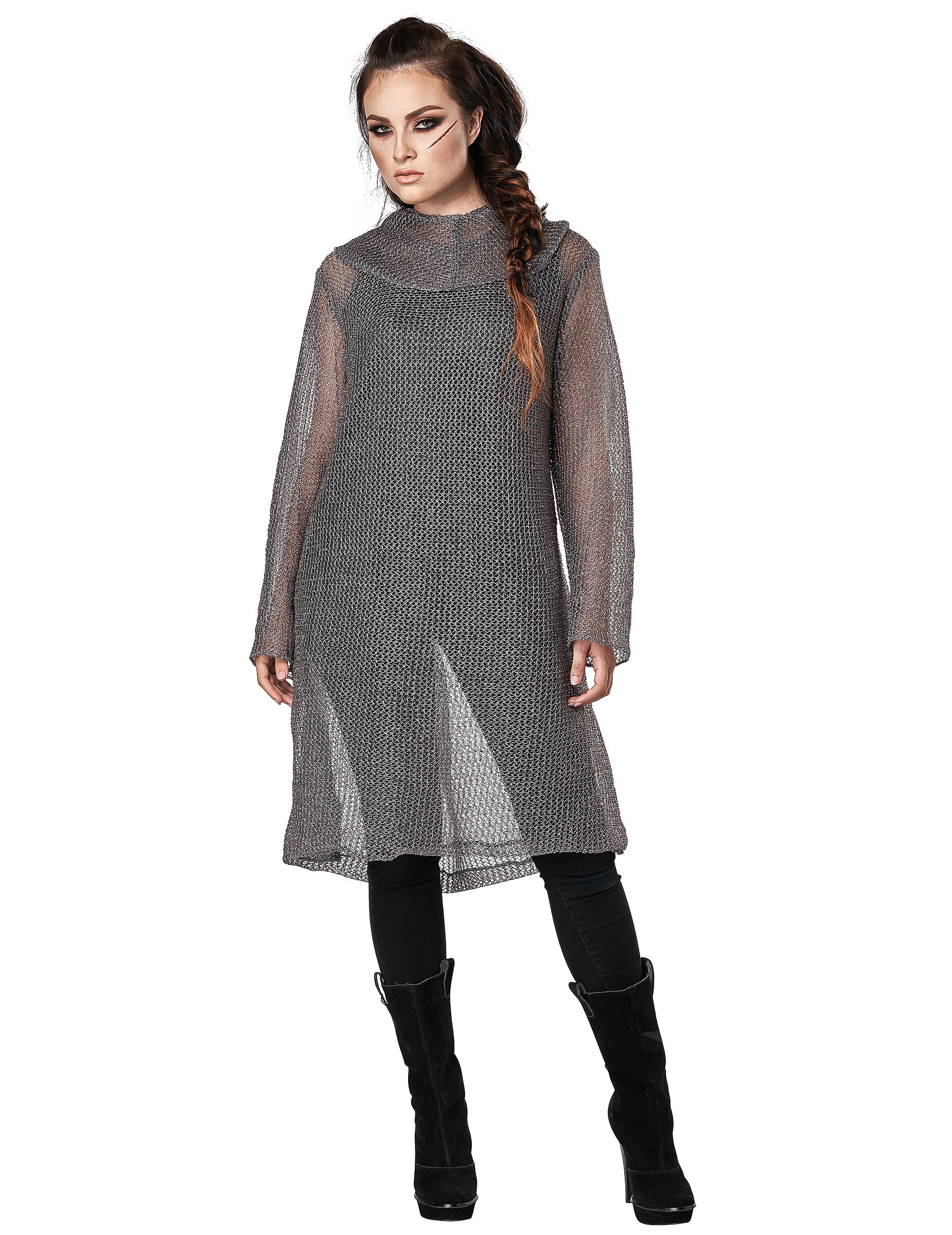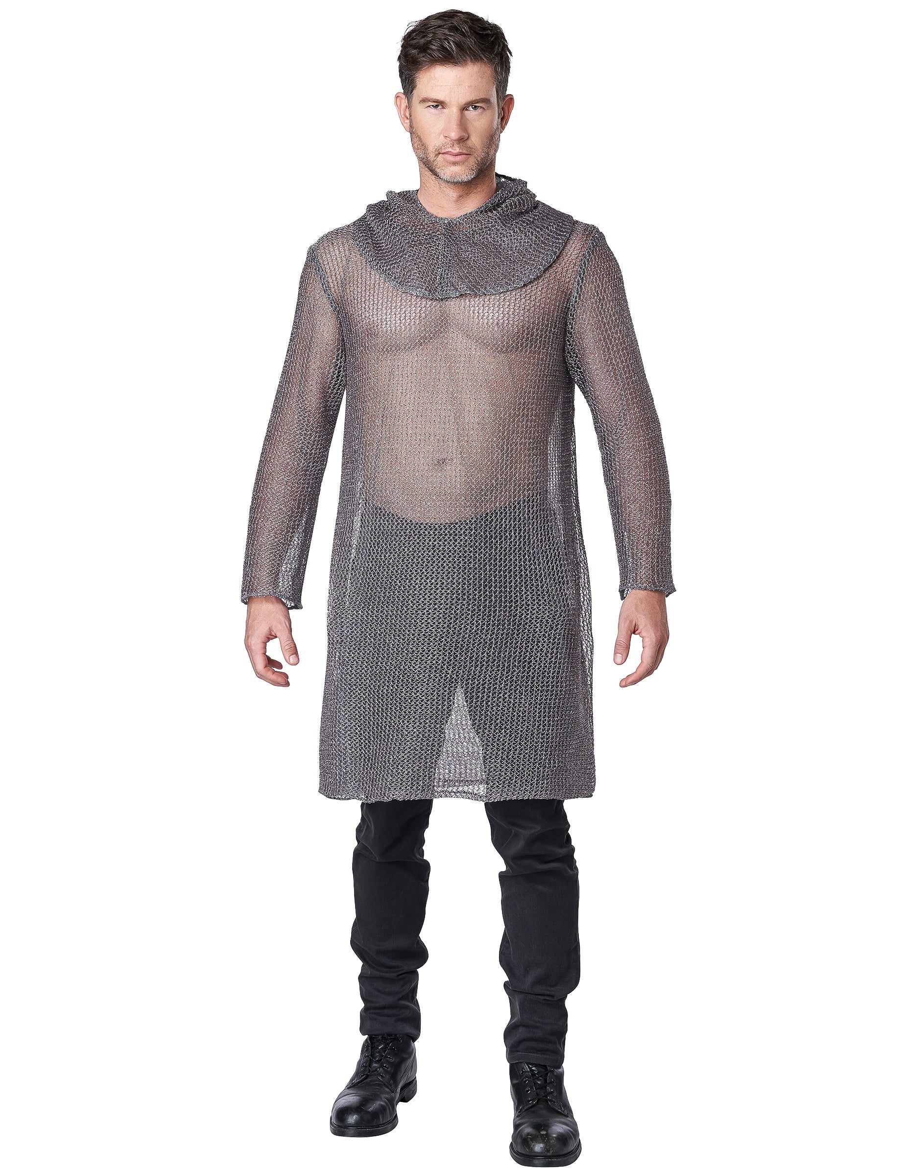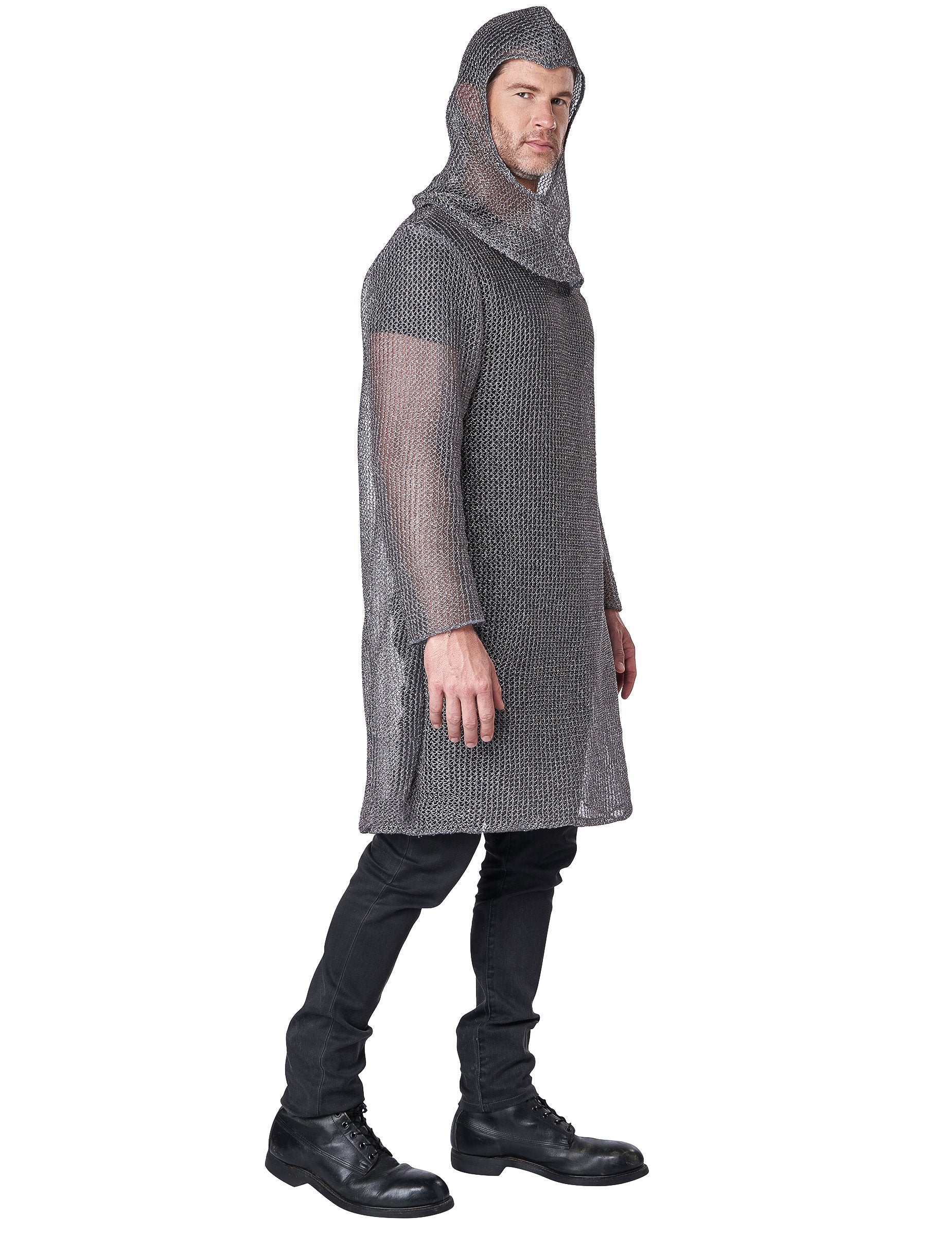 Този костюм на крайбрежния край на рицаря е за възрастни, той включва туниката с качулка (панталони и ботуши не са включени). Тази туника с качулка имитира бреговете на мрежата на средновековните рицари. Следователно е сребърно сиво на цвят с качулка. Просто пропускате меч и щит, който да бъдете въоръжени, докато зъбите по време на следващото ви парти!