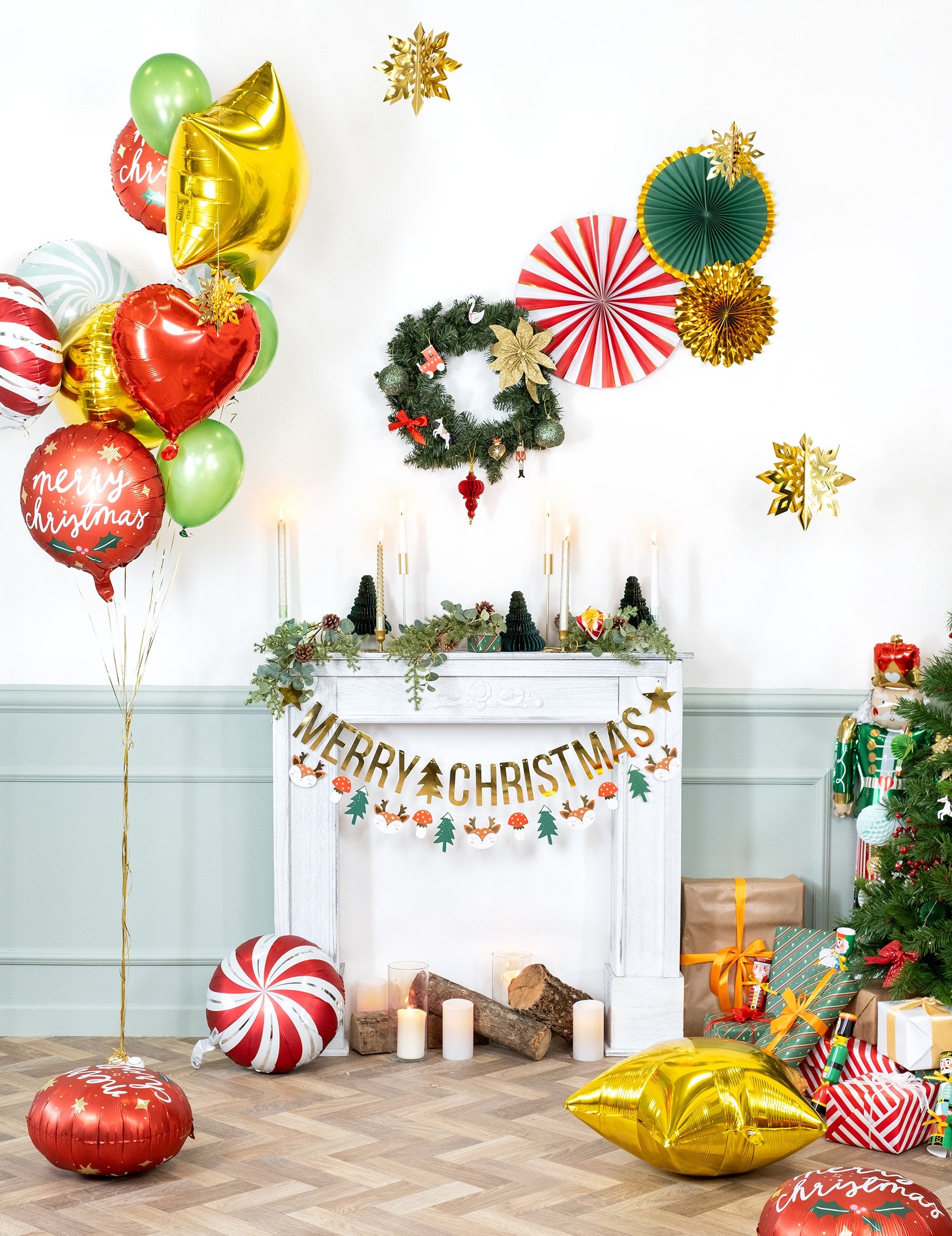 Cette guirlande de Noël mesure environ 150 x 10,5 cm. Elle se compose de lettres dorées formant l'inscription « merry christmas », agrémentée d'un petit sapin et de deux étoiles. Fabriquée en carton souple, elle se suspend facilement grâce à sa ficelle coordonnée. Cette guirlande est idéale pour décorer un mur ou une table lors des fêtes de Noël. Elle complétera parfaitement votre décoration de Noël pour une ambiance festive et raffinée.