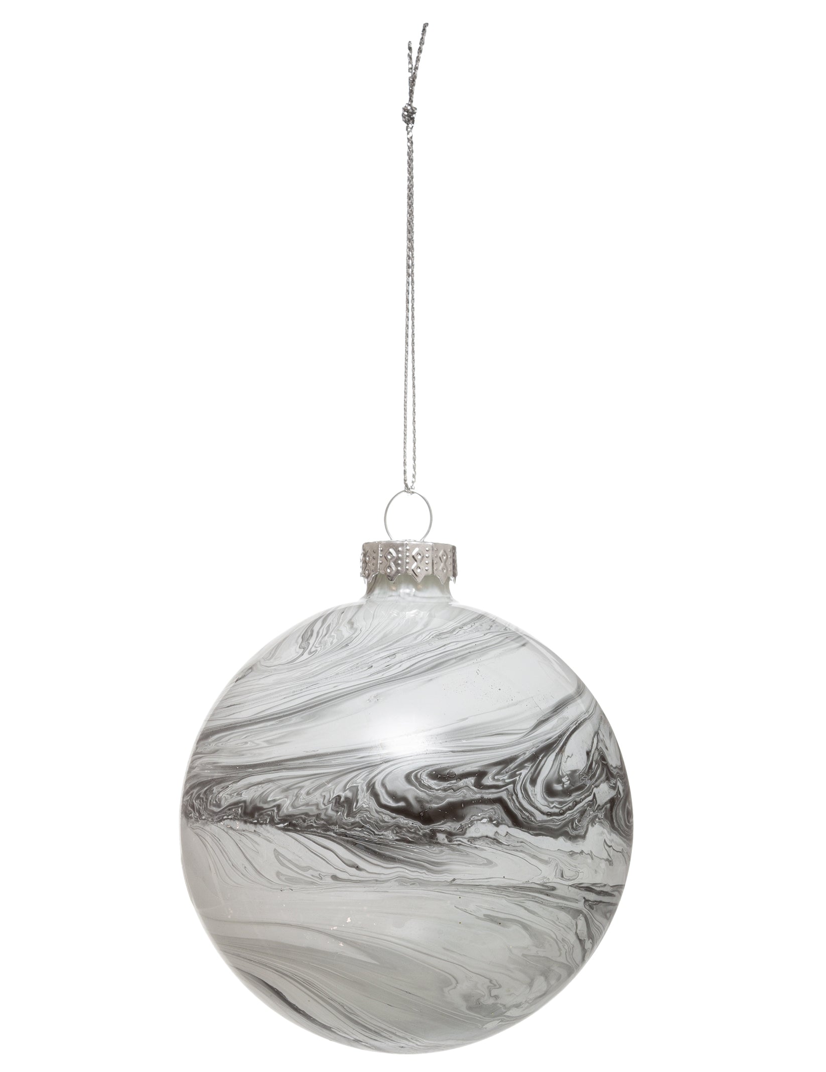 Подобрете декора си с това Коледна топка размери 8 cm с диаметър. Този стъклен модел се отличава с превъзходен мраморен мотив в нюанси на бяло и сиво. Това мраморна топка ще добави нотка шик и модерност към вашия Коледна елха по време на празниците.