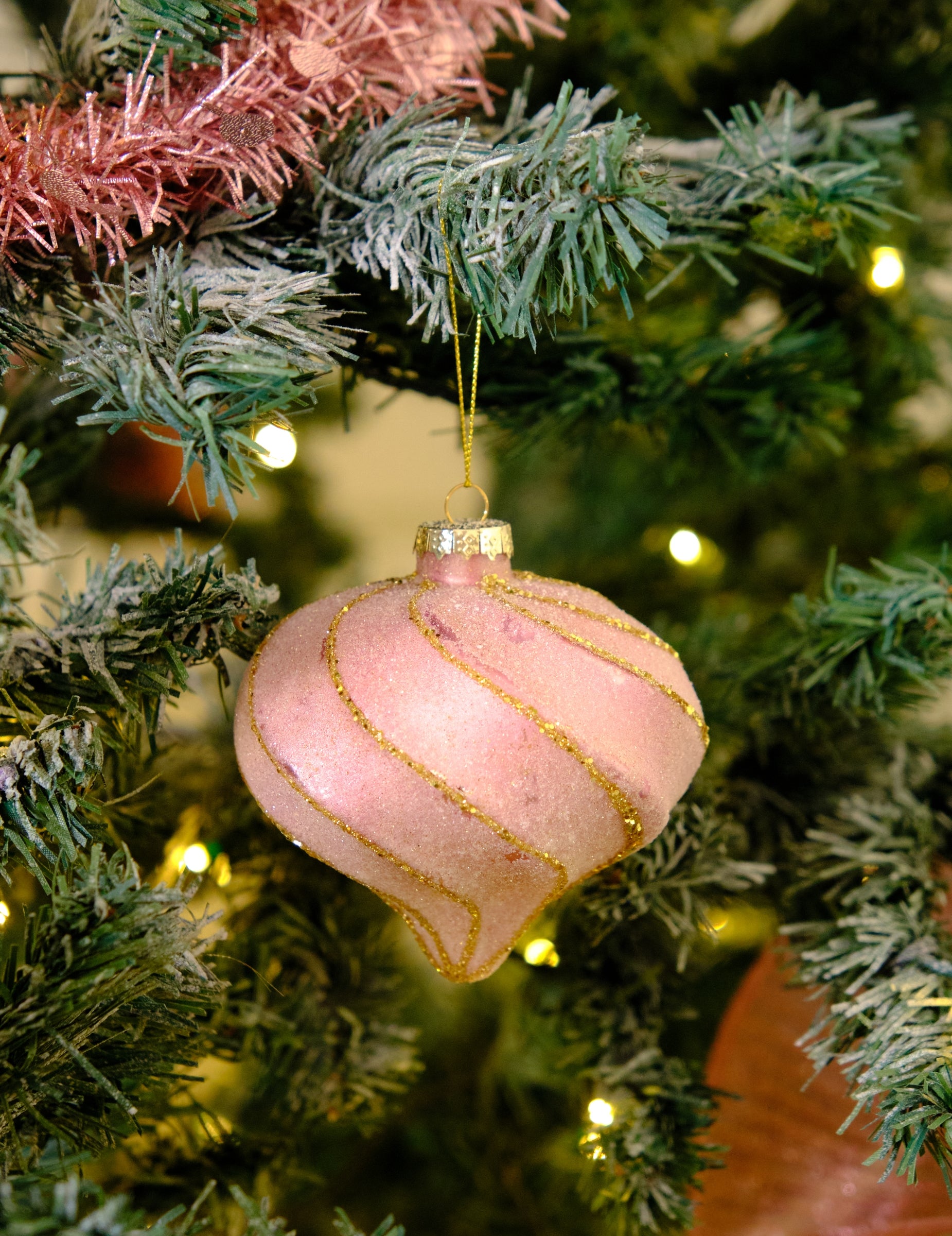 Коледна топка във формата на сълза и розови и златни спирали, 10 броя cm блясък