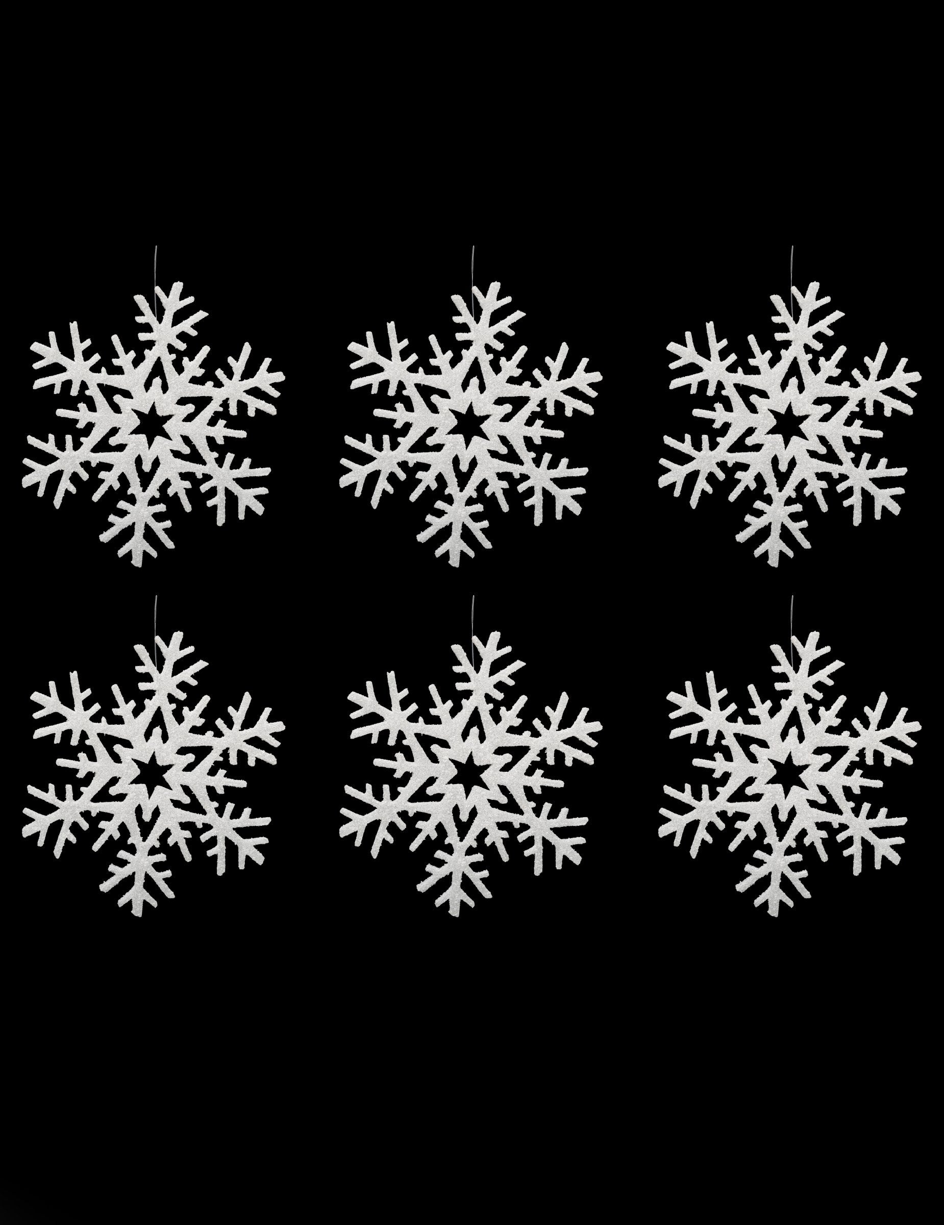 Този комплект се състои от 6 декорации, които да висят под формата на люспи. Те са бели с блясък и имат диаметър около 20 cm. Тези окачвания са идеални за декориране на вашето коледно дърво!