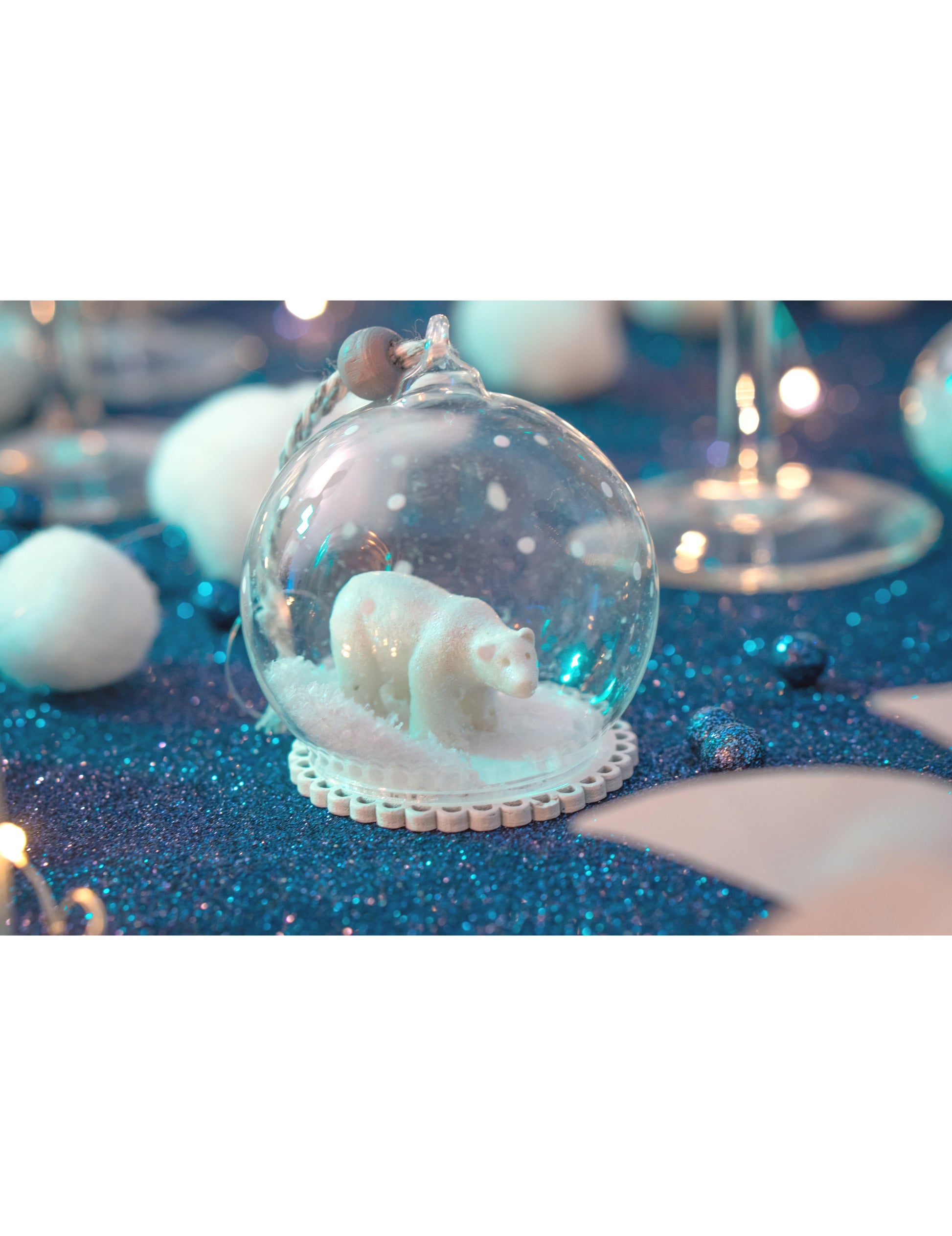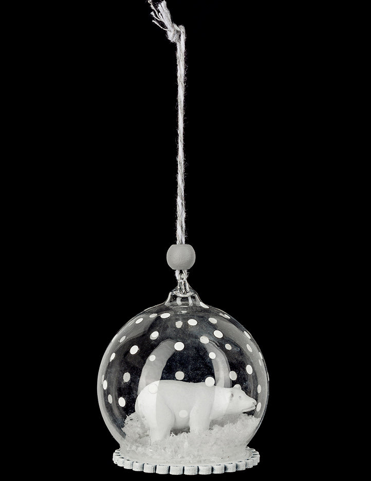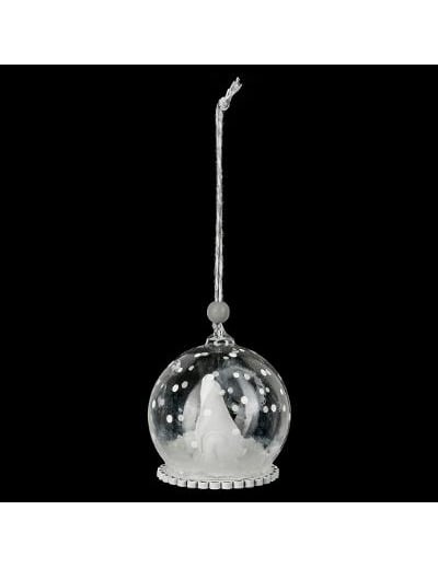 Стъклена коледна топка с полярна мечка 6 cm и сняг