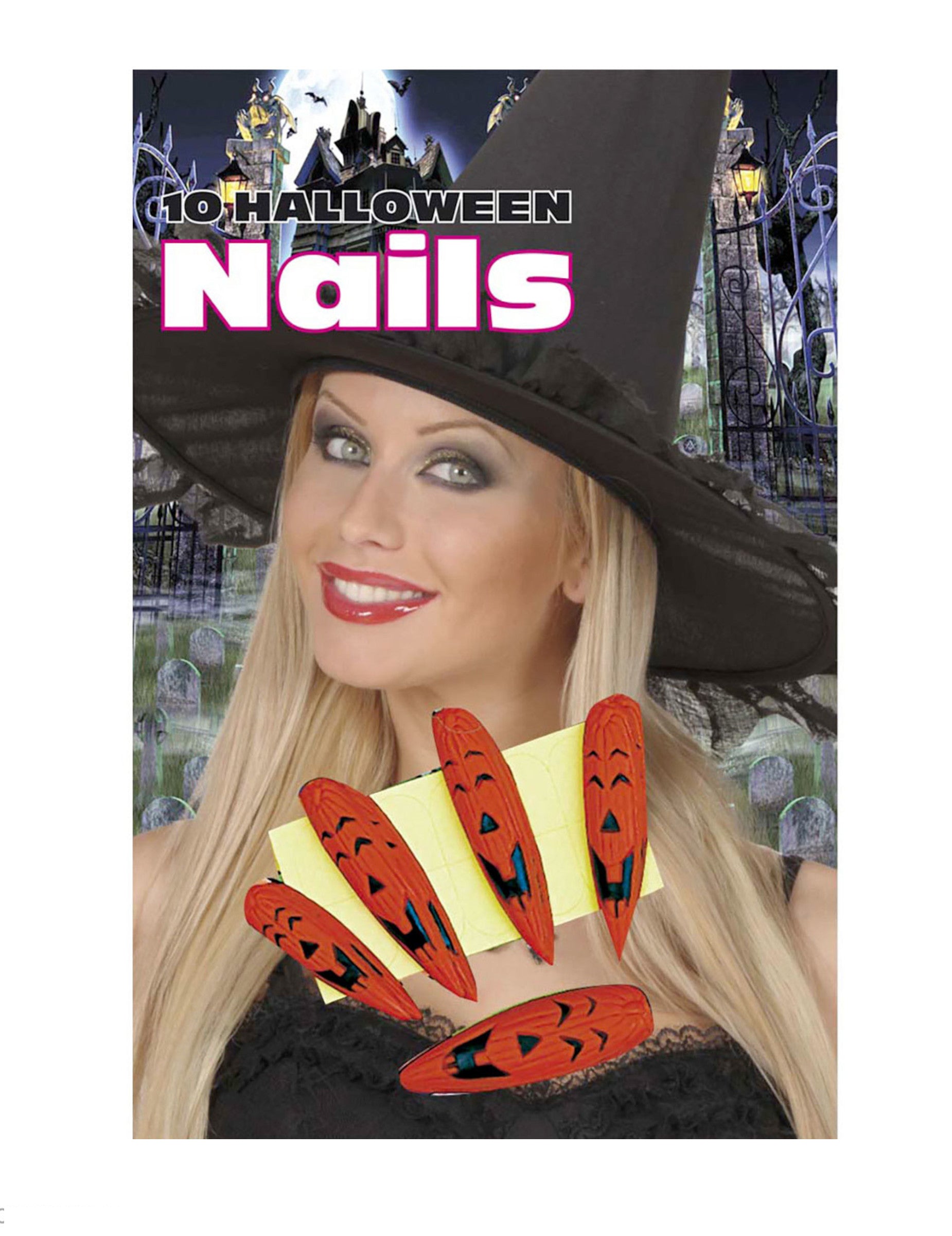 Този комплект с изкуствени нокти тикви е за възрастни. Състои се от 10 изкуствени нокти и 10 двойнозалепващи лепенки.