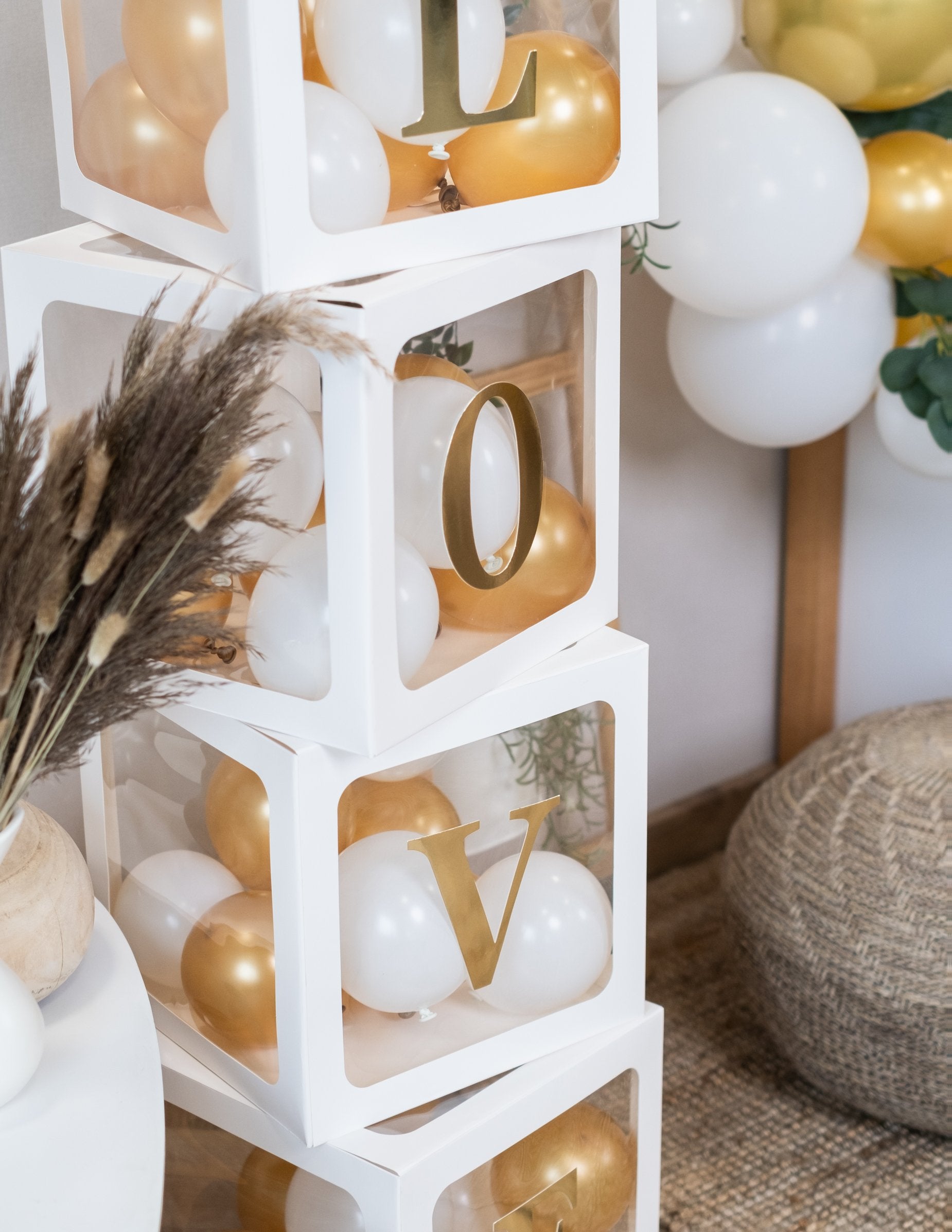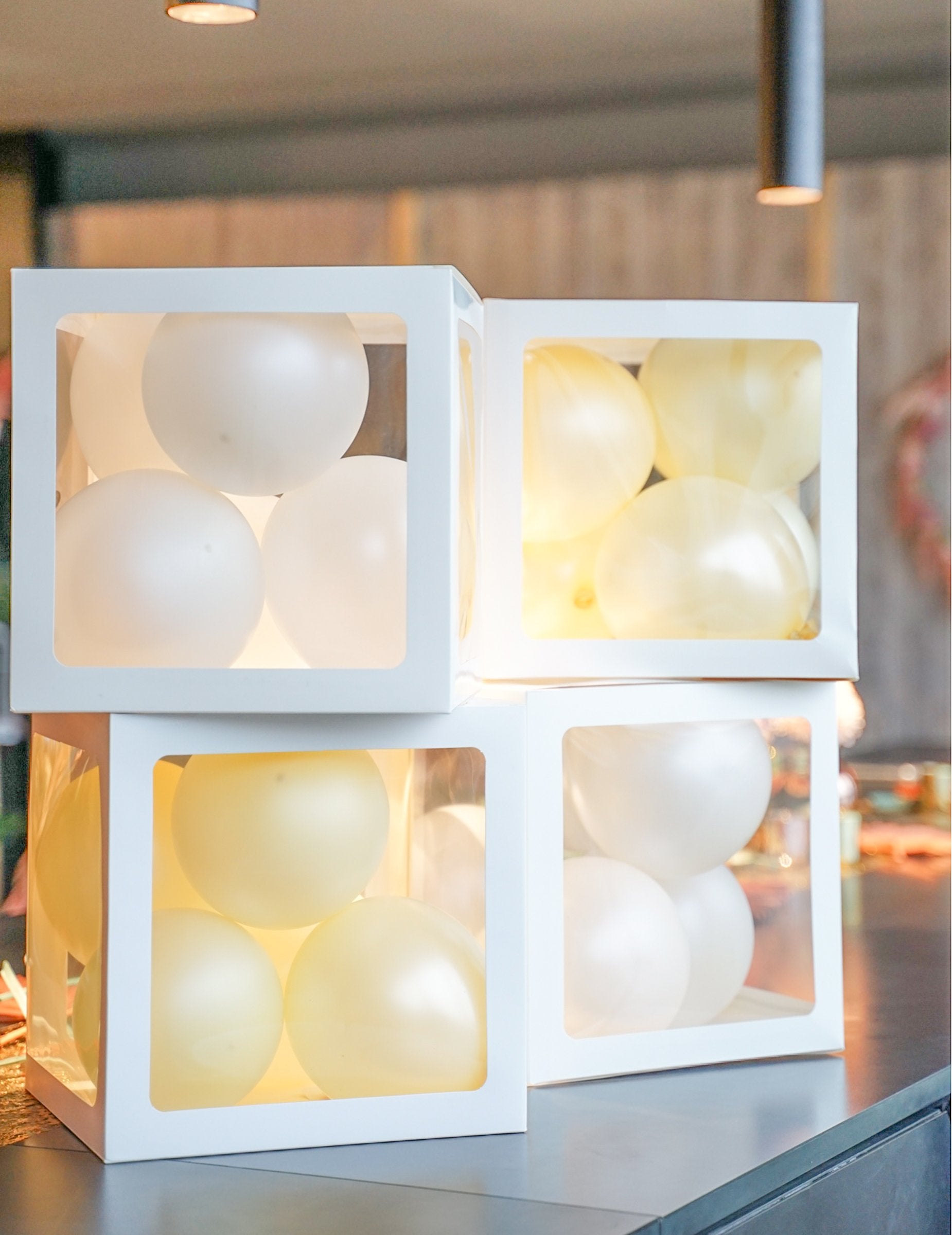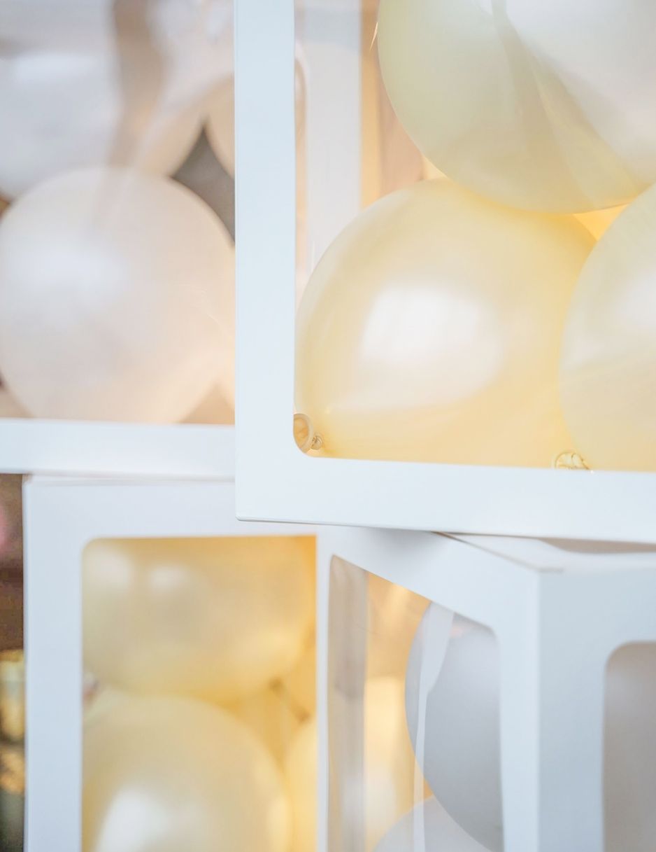 Apportez une touche d'originalité à vos événements avec ce lot de 4 cubes pour ballons transparents de 30 cm. Chaque boîte peut être remplie d'une dizaine de petits ballons de 13 cm environ (non fournis) pour un rendu spectaculaire. Ces cubes sont parfaits pour être personnalisés à l'aide de stickers afin de former des prénoms ou des mots thématiques. Ils s'adaptent à toutes les célébrations : utilisez des ballons de couleurs pour un anniversaire, du blanc pour un mariage ou des nuances pastel pour une gender reveal party.